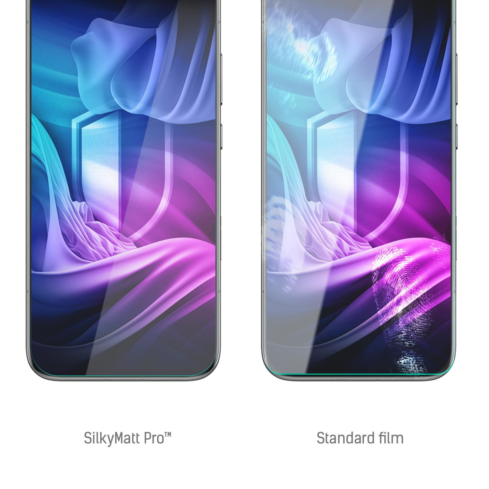 Stačí jeden dotek a už si JU nikdy nevyměníte za jinou... Fólie SilkyMatt Pro má jedinečný matný povrch. Je hedvábná na dotek a poskytuje bezkonkurenční komfort používání chytrého telefonu za každých podmínek. Píšete zprávu na plném slunci? S fólií SilkyMatt Pro obrazovku máte vždy pod kontrolou. Prst po displeji klouže hladce a každý kontakt s obrazovkou je čistou radostí. Další výhodou matné povrchové úpravy je eliminace otisků prstů.