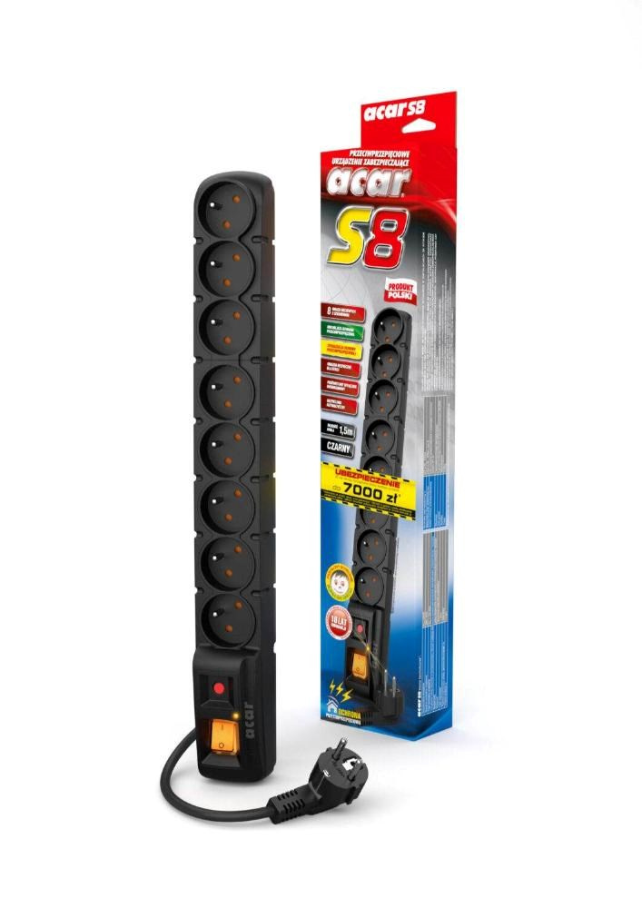 Akčné ponuky na váš e-mailAcar S8 1.5m kábel, 8 zásuviek, prepäťová ochrana, čierna