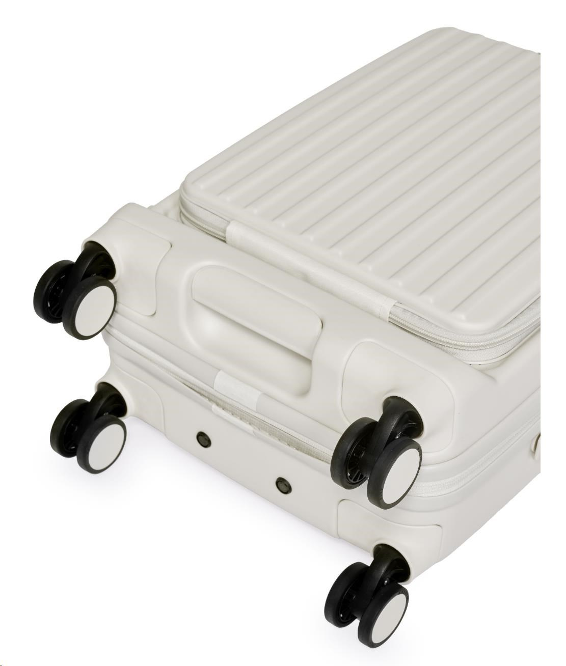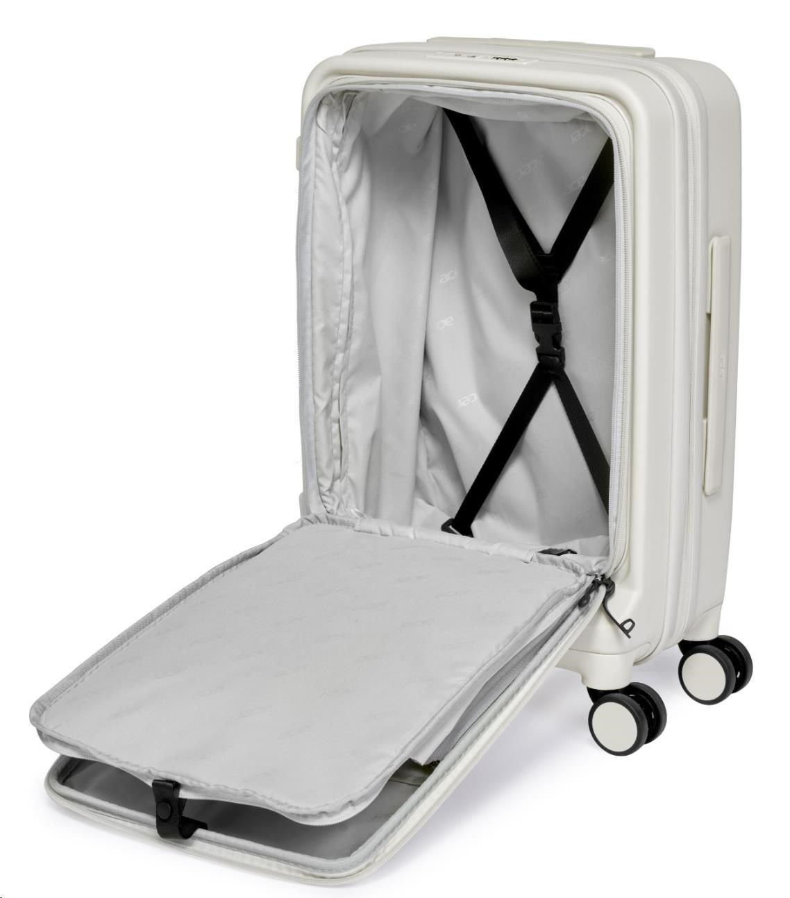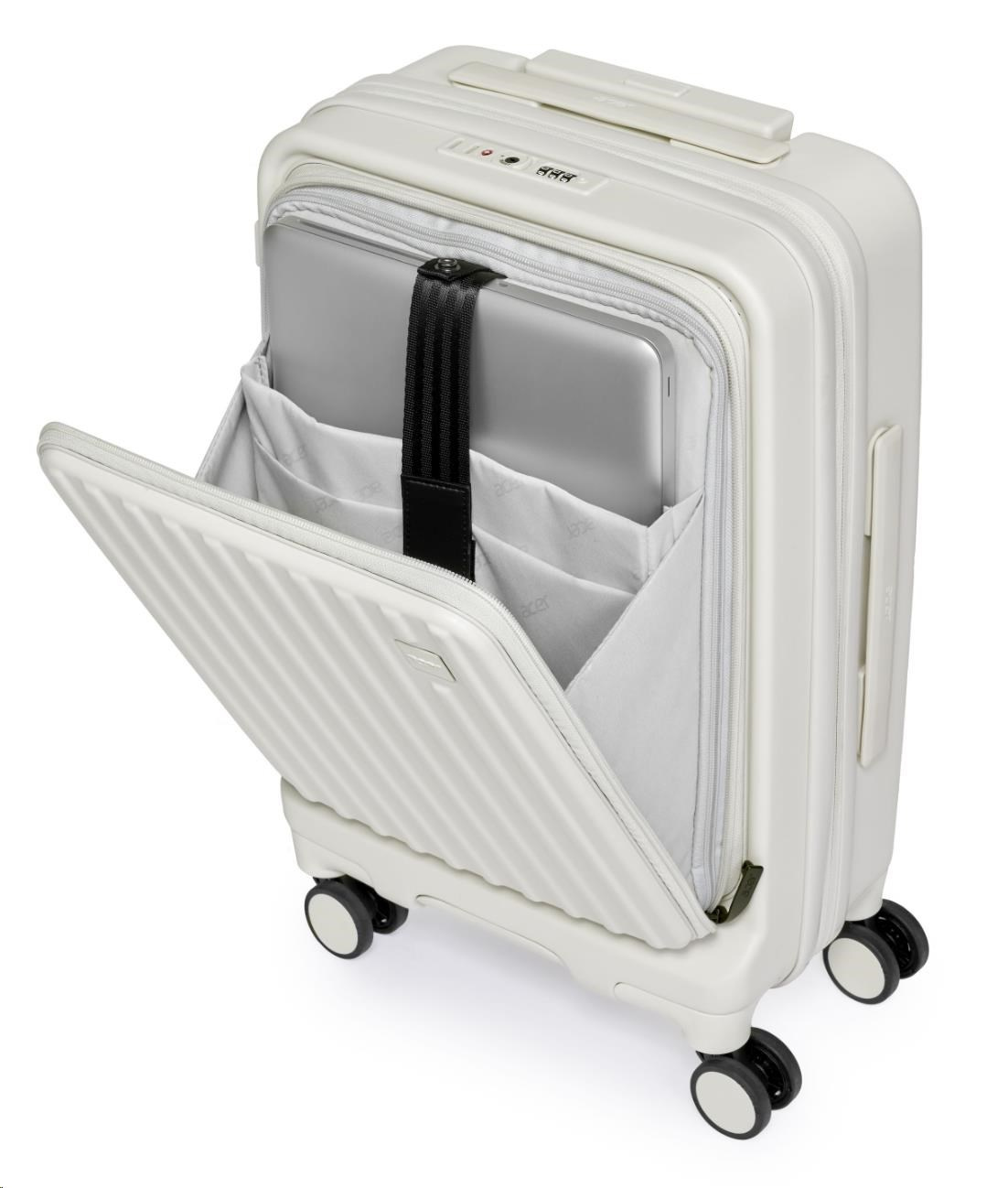 Inovativní vpředu otevíraná konstrukce poskytuje rychlý přístup k notebooku, dokumentům a mobilním zařízením, když zavazadlo stojí ve vzpřímené poloze, a šetří tak místo i čas. Za dělícím panelem na zip se nachází dostatečný úložný prostor s utahovacím popruhem, který udrží vaše věci v bezpečí a nabízí flexibilní kapacitu pro každou cestu. Velikost 20'' je ideální pro cenově výhodná příruční zavazadla leteckých společností.