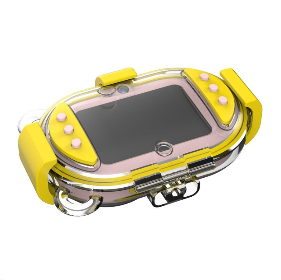 Kamera Realikids Cam Waterproof je dodaný s puzdrom, ktoré je vodotesné do 10 metrov, takže ju môžete bezpečne používať pod vodou alebo za . Toto puzdro je vyberateľné: môžete ho odňať a mať ešte kompaknejšie zariadenie a nechať plne vyniknúť jeho oválny a originálny dizajn. Určite to ohromí všetkých vašich priateľov!