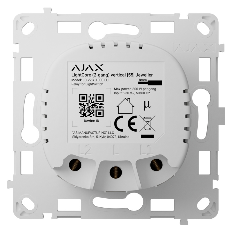 Popis Ajax LightCore (2-gang) vertical - Relé pro LightSwitch (spínač řazení 5-lustrový)
