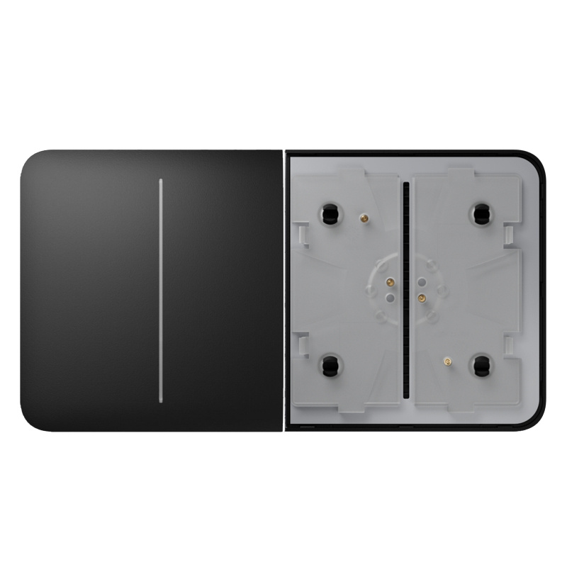 Panel je vždy nutné kombinovať s Ajax relé a Ajax rámečkom podľa vášho výberu - spolu vytvára inteligentný nástenný vypínač - LightSwitch.
