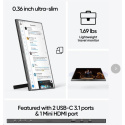 Kryt monitoru je silný pouhých 9,3 mm, což se projevuje v minimalistickém vzhledu a snadné přepravě. Vestavěný stojan umožňuje nastavit úhel náklonu až do 80°, takže můžete snadno upravit nastavení podle svých potřeb.