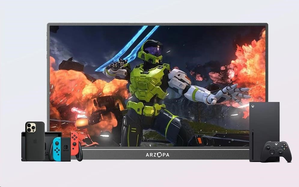 Arzopa Z1C funguje s celou řadou zařízení - od notebooků a smartphonů až po konzole (Xbox, Switch, PS4/5) a Raspberry Pi. Díky tomu je monitor vhodný pro různé aplikace - od kancelářské práce přes studium až po zábavu.
