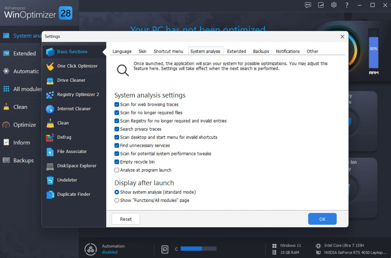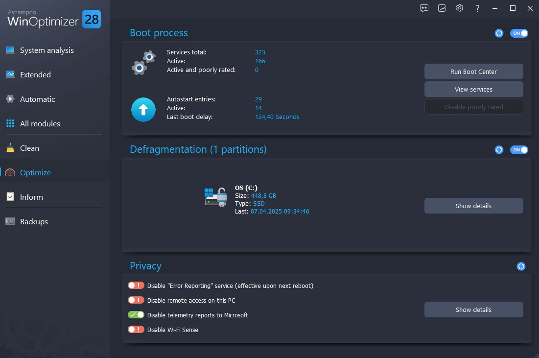 S novým programom Ashampoo WinOptimizer 28 získate automaticky najlepší zážitok z práce s Windowsom. Jeho nová automatizácia zrýchľuje, čistí a ladenie vaše aplikácie. Nechajte svoj počítač plynule prispôsobiť vašim potrebám pomocou priorít procesov, automatického čistenia dočasných súborov a vlastných konfigurácií profilov na základe nového nástroja Profile Booster. Či už ide o hranie hier, prácu alebo prehliadanie webu, maximalizujte výkon systému alebo šetrite prostriedky, voľba je na vás. Nový nástroj Crash Analyzer ponúka hlboký pohľad na pády systému a ich príčiny, zatiaľ čo štyri pokročilé čističe zabezpečujú súkromie a poskytujú údržbu systému. Vďaka vylepšenej správe pamäti dokáže WinOptimizer využiť viac prostriedkov na vykonávanie komplexných analýz takmer okamžite!