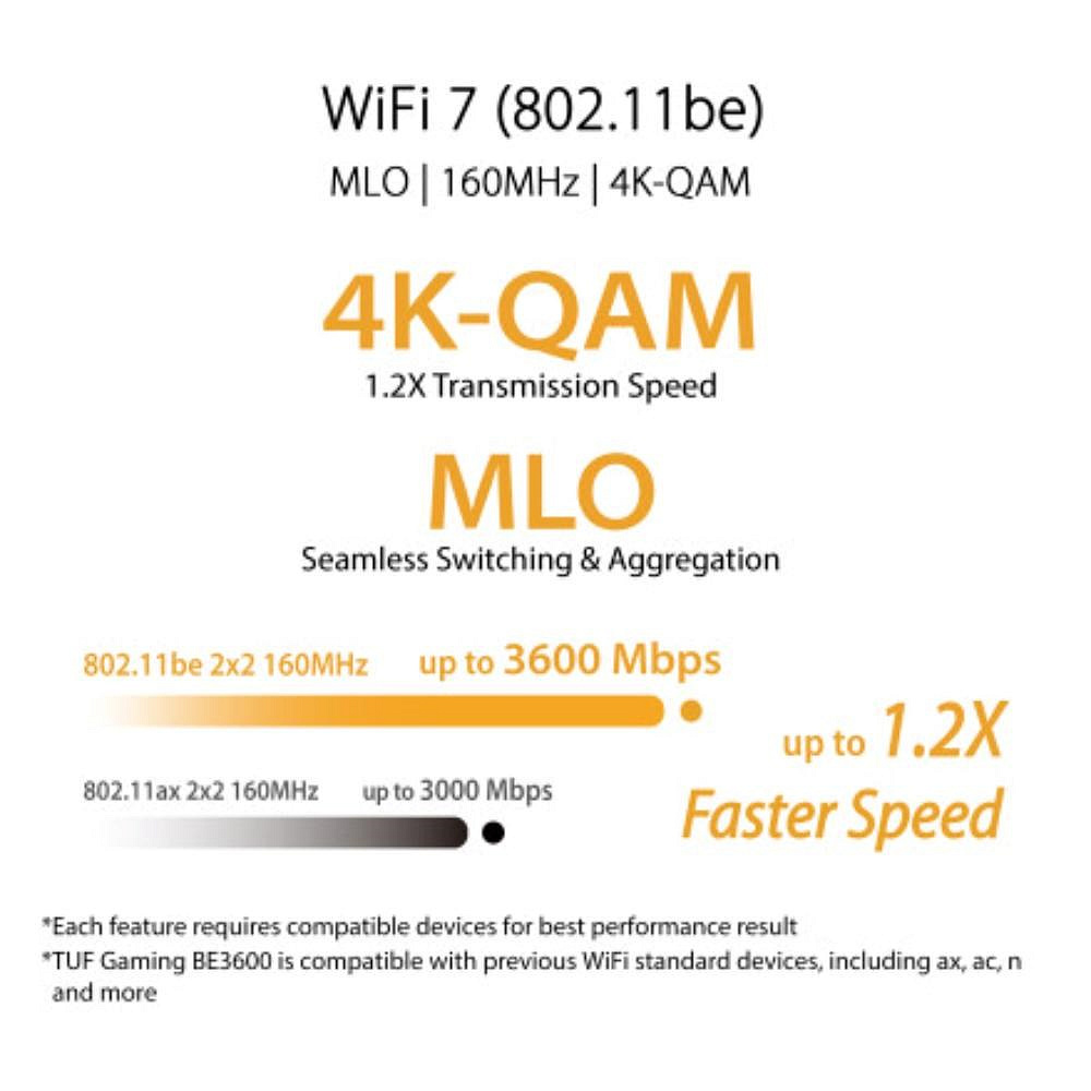 | Boosts Speed | OFDMA (Orthogonal Frequency Division Multiple Access) Beamforming: standard-based and universal 4096-QAM high data rate 20/40/80/160 MHz bandwidth |