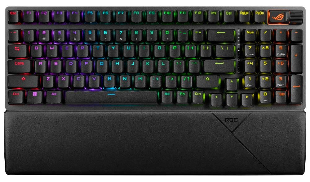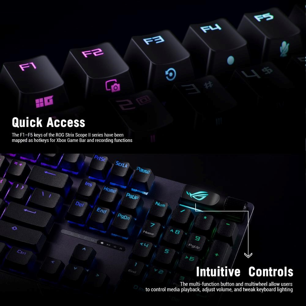 Akčné ponuky na váš e-mailHerná klávesnica ROG Strix Scope II X s mechanickými spínačmi ROG NX V2 s možnosťou výmeny počas prevádzky, penovým tlmením hluku, zdvojenými klávesami PBT alebo ABS s UV povlakom, streamovacími klávesmi, multifunkčnými ovládacími prvkami, tromi regiónmi sklonu a opierkou zápästia.