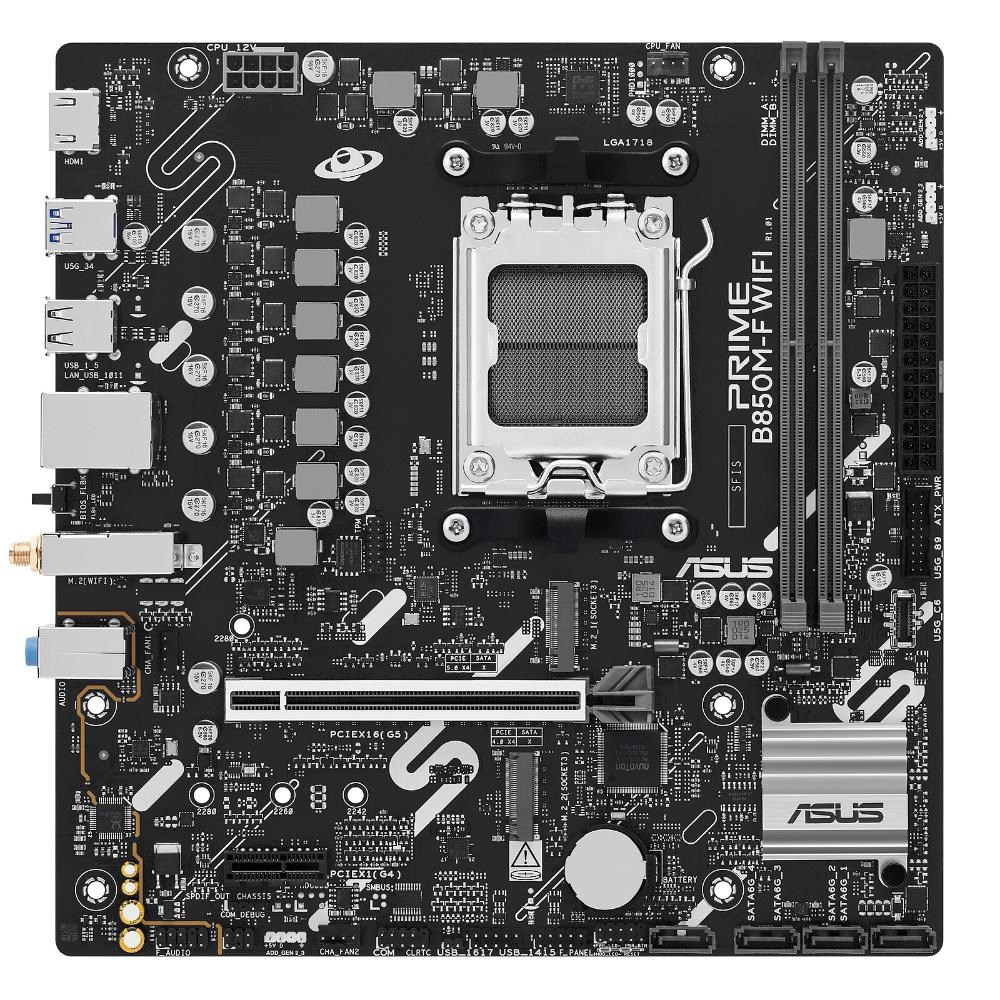 Akčné ponuky na váš e-mailNa základe čipovej súpravy AMD B850 je základná doska ASUS PRIME B850M-F WIFI navrhnutá tak, aby pojala procesory AMD Ryzen 7000/8000/9000 na pätici AM5. Je ideálna na zostavenie hernej alebo multimediálnej konfigurácie. Cena je dostupnejšia ako u čipovej súpravy X870, pričom podporuje DDR5, grafické karty PCI-Express 5.0 a SSD M.2 PCIe 5.0.