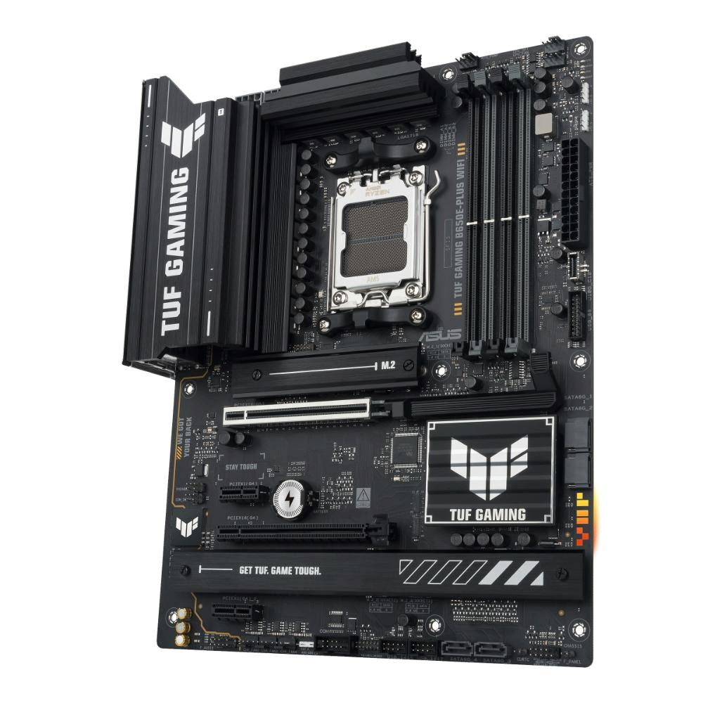 Akčné ponuky na váš e-mailASUS TUF GAMING B650E-PLUS WIFI takes all the essential elements of the latest AM5 Socket for AMD Ryzen™ Desktop Processors and combines them with game-ready features and proven durability. Engineered with military-grade components, an upgraded power solution and a comprehensive cooling system, this motherboard goes beyond expectations with rock-solid and stable performance for marathon gaming. TUF GAMING motherboards also undergo rigorous endurance testing to ensure that they can handle conditions where others may fail. Aesthetically, this model incorporates rugged off-black and geometric design elements to reflect the dependability and stability that defines the TUF GAMING series. This platform delivers the power and connectivity that advanced AI PC applications demand.