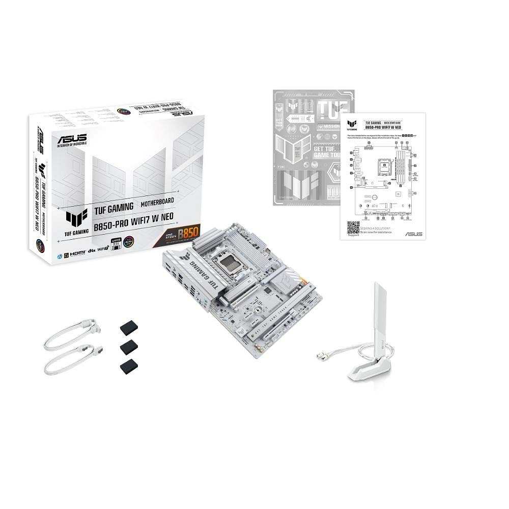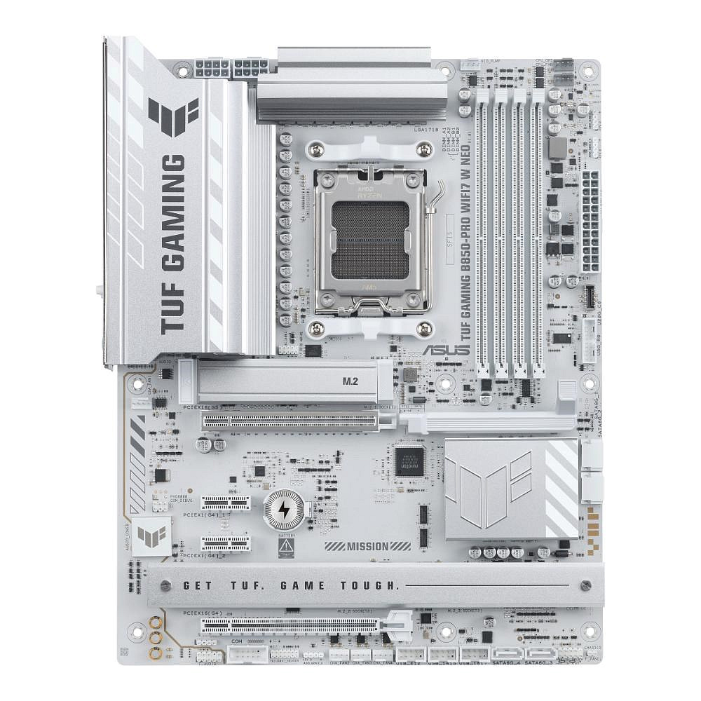 Akčné ponuky na váš e-mailASUS TUF GAMING B850-PRO WIFI7 W NEO takes all the essential elements of the latest AMD Ryzen™ processors and combines them with game-ready features and proven durability. Engineered with an upgraded power solution and a comprehensive cooling system, this motherboard goes beyond expectations with rock-solid and stable performance for marathon gaming. TUF GAMING motherboards also undergo rigorous endurance testing to ensure that they can handle conditions where others may fail. This platform delivers the power and connectivity that advanced AI PC applications demand.