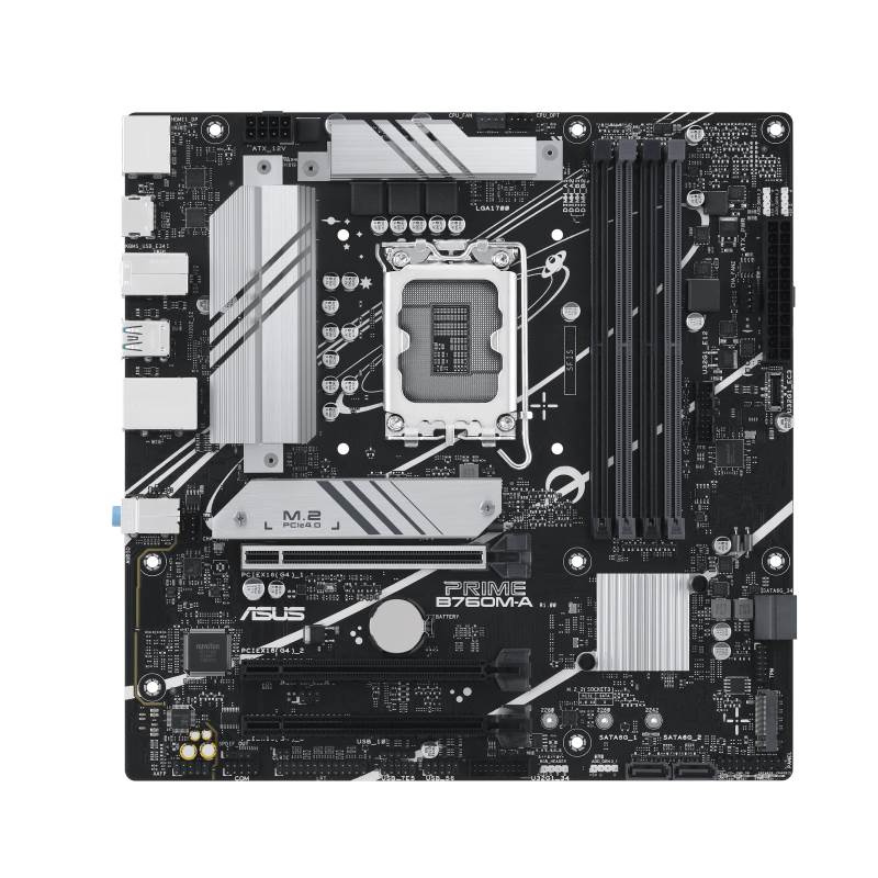 Akčné ponuky na váš e-mailIntel® B760 (LGA 1700) mATX motherboard with PCIe 4.0, DDR5, two M.2 slots, Realtek 2.5Gb Ethernet, DisplayPort, Dual HDMI™, SATA 6 Gbps, rear USB 3.2 Gen 2, front USB 3.2 Gen 1 Type-C®, Aura Sync