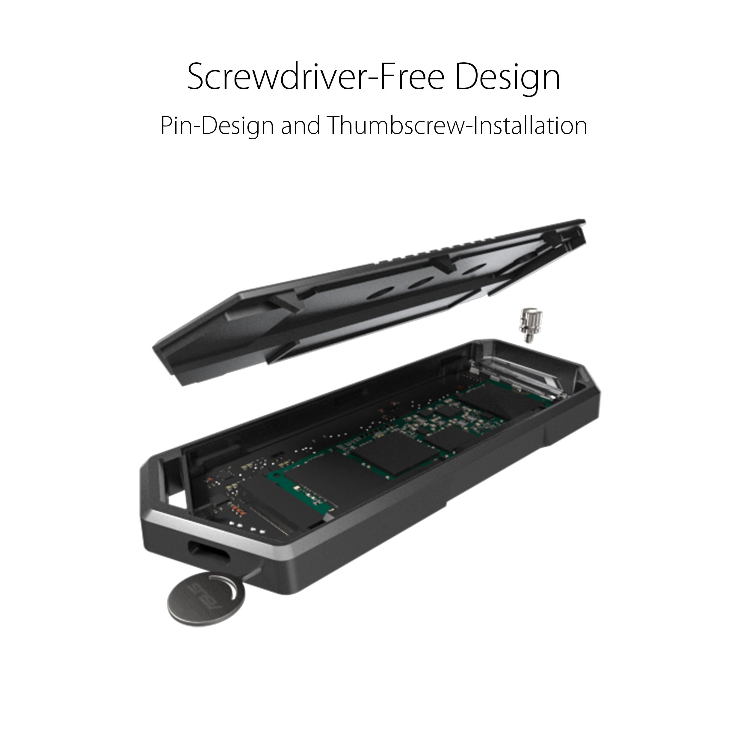 Akčné ponuky na váš e-mailBox na externé disky M.2 NVMe SSD ROG Strix Arion - USB 3.2 GEN2 Type-C (10 Gb/s), dva káble USB-C do USB-C a USB-A, inštalácia bez použitia skrutkovača, obsahuje chladovacie podložky, vhodný pre PCIe 2280/2260/2242/2230 M key/B+M Key