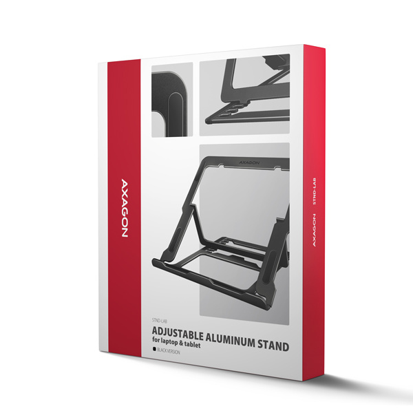 Akčné ponuky na váš e-mailAXAGON STND-LAB je stojan na notebook či tablet, který zajišťuje pohodlí a zlepšuje ergonomii při práci. Je ideální pro zařízení s úhlopříčkou od 10" do 17.3" a umožňuje nastavení až osmi poloh. Snadno tak najdete ideální sklon stojanu pro maximální uvolnění vašich krčních a zádových svalů. Užijte si komfortní pracovní prostředí s kompaktním a přenosným stojanem, který se dokonale přizpůsobí vašim potřebám, ať už pracujete doma, v kanceláři, nebo na cestách.