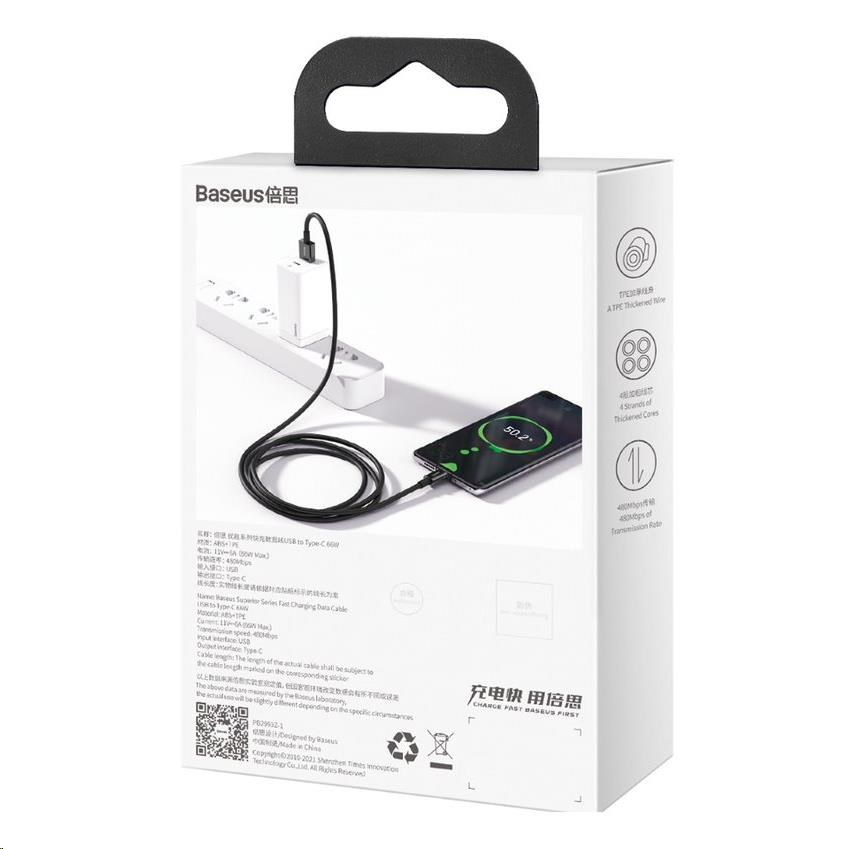 Baseus Superior Series USB/Type-C rýchlonabíjací kábel 66W 1m čierny