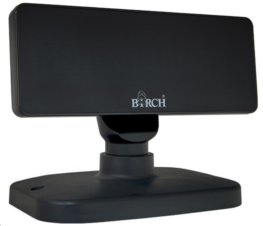 Birch DSP-V9 je vlastný alfanumerický VFD displej pre pokladnice, pošty a iné pulty za bezkonkurenčnú cenu. Zobrazuje 40 znakov v dvoch riadkoch veľkým, vysoko svietivým písmom. Ovládanie prebieha cez rozhranie USB alebo RS232 pomocou štandardného príkazového jazyka podľa vášho výberu (LD220, DSP800, UTC/S, ESC/POS, AEDEX, CD5220 a iné). Jeho hlavu možno horizontálne otáčať až do uhla 355°.