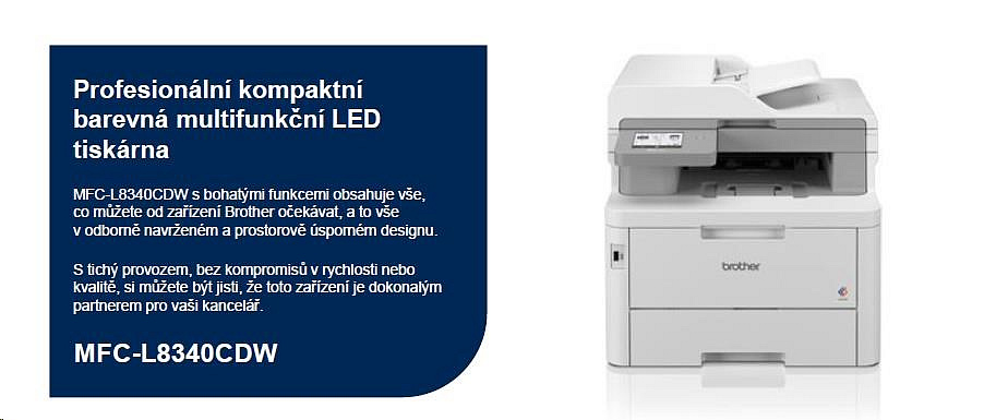 Popis BAZAR - BROTHER multifunkce color LED MFC-L8340CDW - A4 30ppm 512MB 250listů USB WIFI ADF50 duplex - Poškozený obal (Ko