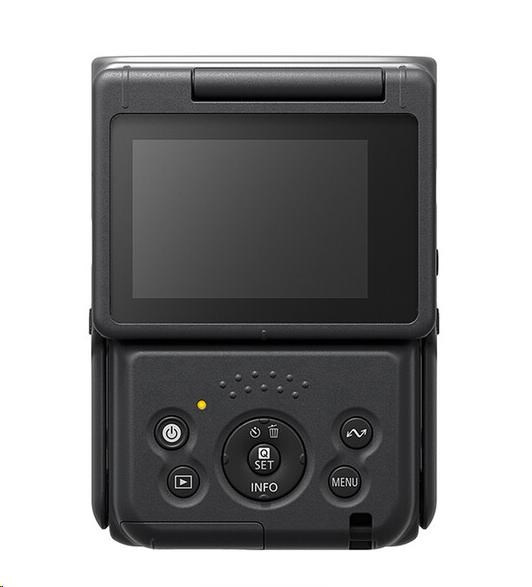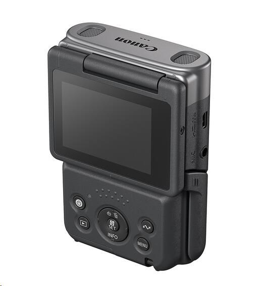 Kameru PowerShot V10 vo vertikálnom tele a navrhnutú s dôrazom na jednoduchosť je možné takmer úplne ovládať jednou rukou. Je vybavená 2,0palcovým dotykovým LCD displejom, ktorý možno preklopiť dopredu, čo je ideálne na natáčanie samého seba pri vlogovaní aj na natáčanie ostatných z ruky, keď chcete ľahko zachytiť emócie a navodiť intímnu atmosféru medzi vami a divákmi. Integrovaný statív vám umožní natáčať viac obsahu z pevného uhla, ako sú návody na varenie, hauly či ďalšie obľúbené formáty ako „Get Ready With Me“, „Unboxing“, „AMA“ alebo videá so zoznammi.