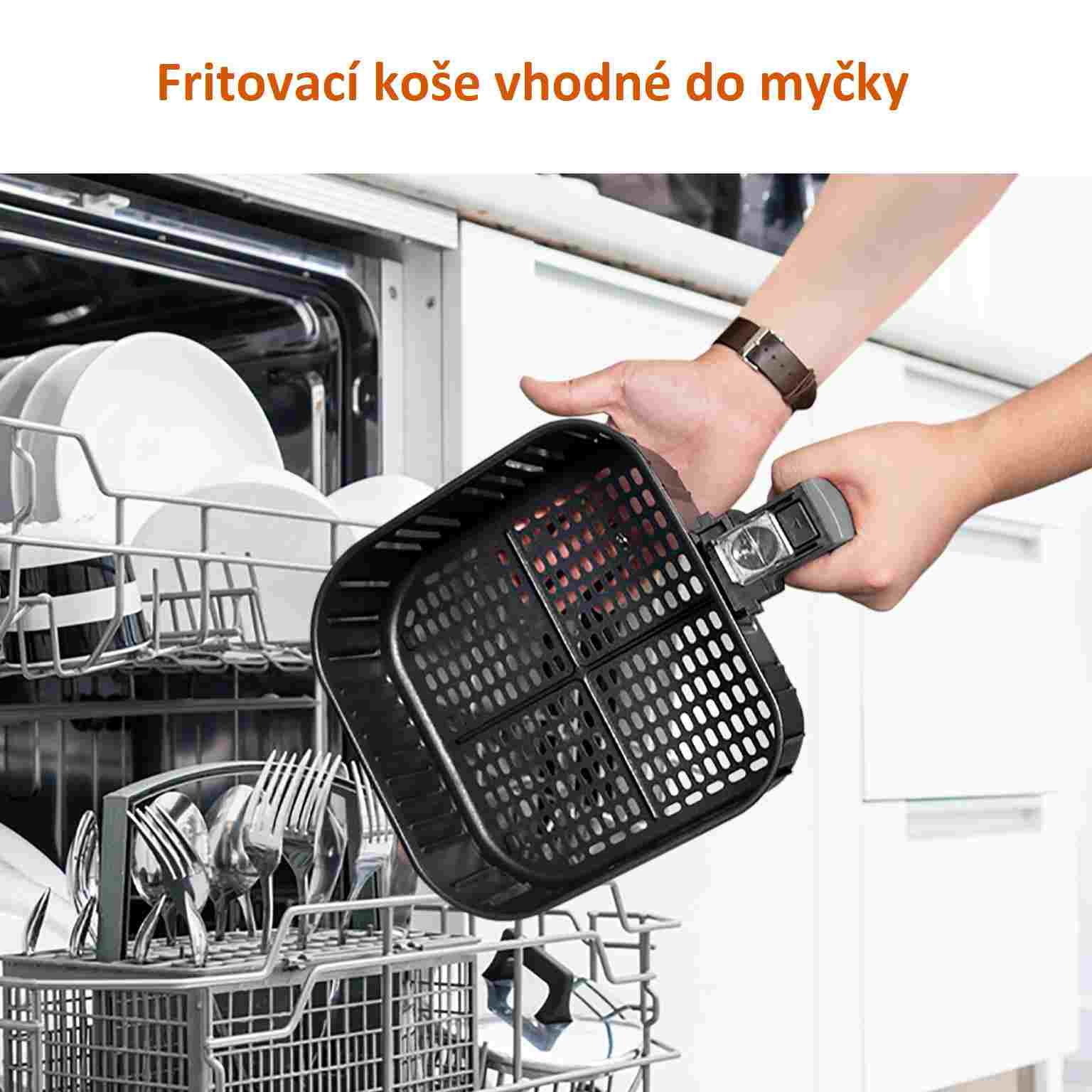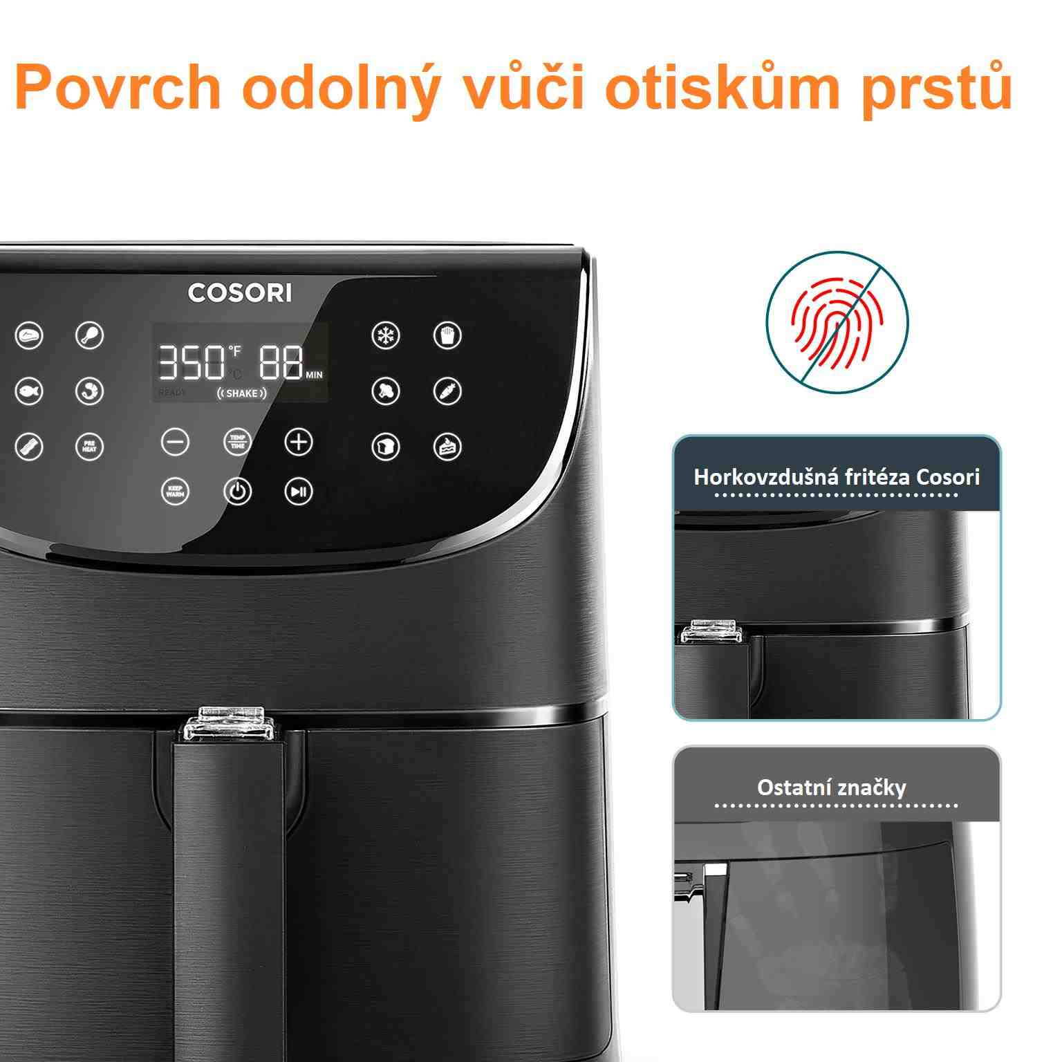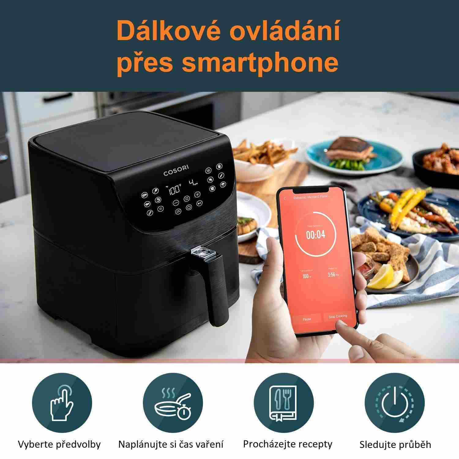Teplovzdušná fritéza COSORI CP158-AF má 6l varný priestor a 5,5l kôš s praktickým štvorcovým tvarom, vďaka čomu uspokojí aj početnejšie domácnosti. S výkonom 1700 W je fritéza extrémne výkonná, čo skracuje dobu varenia a šetrí tak elektrickú energiu. Vďaka veľkosti varného priestoru fritézy je možné pripraviť napríklad aj celé 3kg kura v kuse, ktoré by sa do fritézy s kruhovým košom alebo objemom 3-4l zmestilo len veľmi ťažko.