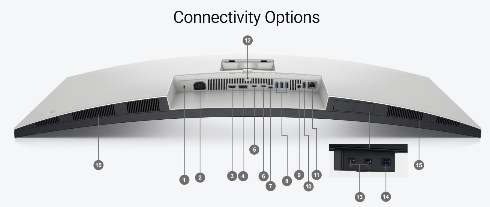- 1 x USB Type-C® upstream port (iba dáta) (SuperSpeed USB 10 Gbps, USB 3.2 Gen2)