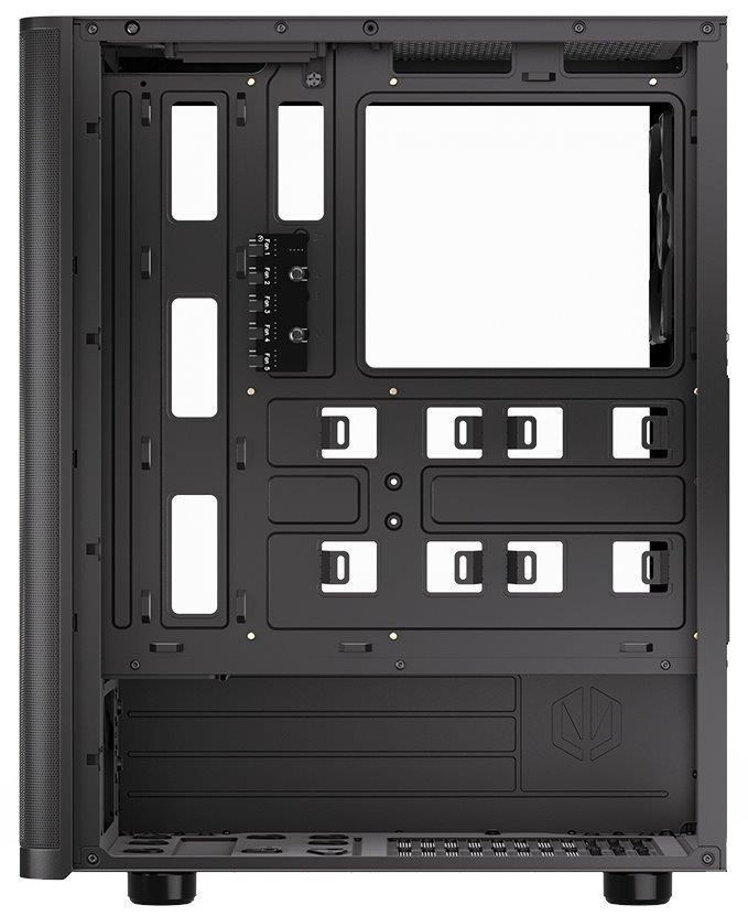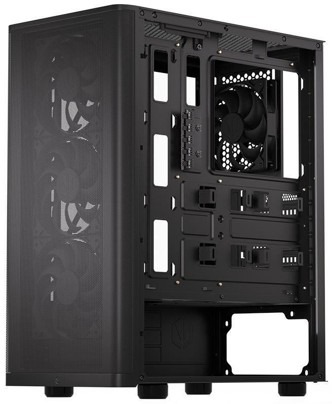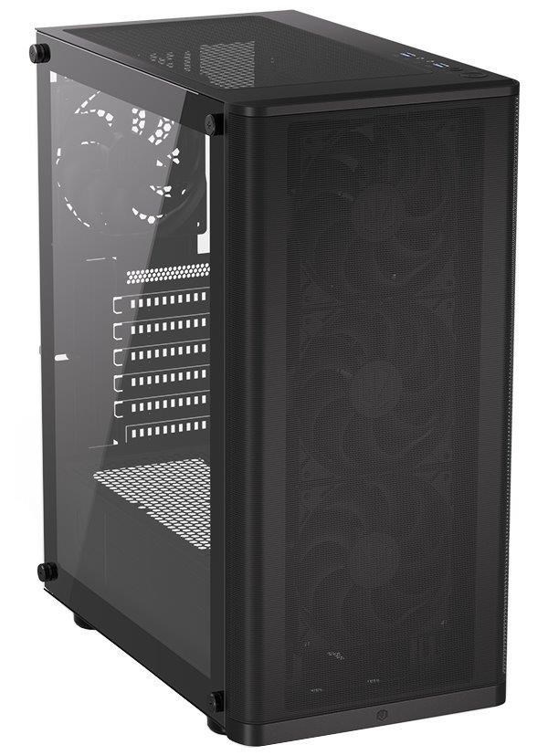 Akčné ponuky na váš e-mailSkriňa formátu Middle Tower s priehľadnou bočnicou z tvrdeného skla ponúka dve 2,5" pozície pre SSD disky a jednu 3,5" pozíciu pre pevný disk. Na hornom okraji sa nachádza dva USB 3.0 porty, slúchadlový výstup a audio vstup pre mikrofón. Vybavená je štyrmi 120 mm ventilátormi, ktoré spolu s perforovaným čelným panelom zabezpečujú dostatočné prúdenie vzduchu. Promyšlené riešenie umožňuje pohodlné umiestnenie az 360 mm dlhého výmenníka vodného chladenia na prednej strane. Vo skrini je dostatok priestoru pre chladič CPU do výšky až 161 mm a grafickú kartu s dĺžkou až 315 mm. Dodáva sa bez zdroja. Súčasťou je tiež sada prachových filtrov.
