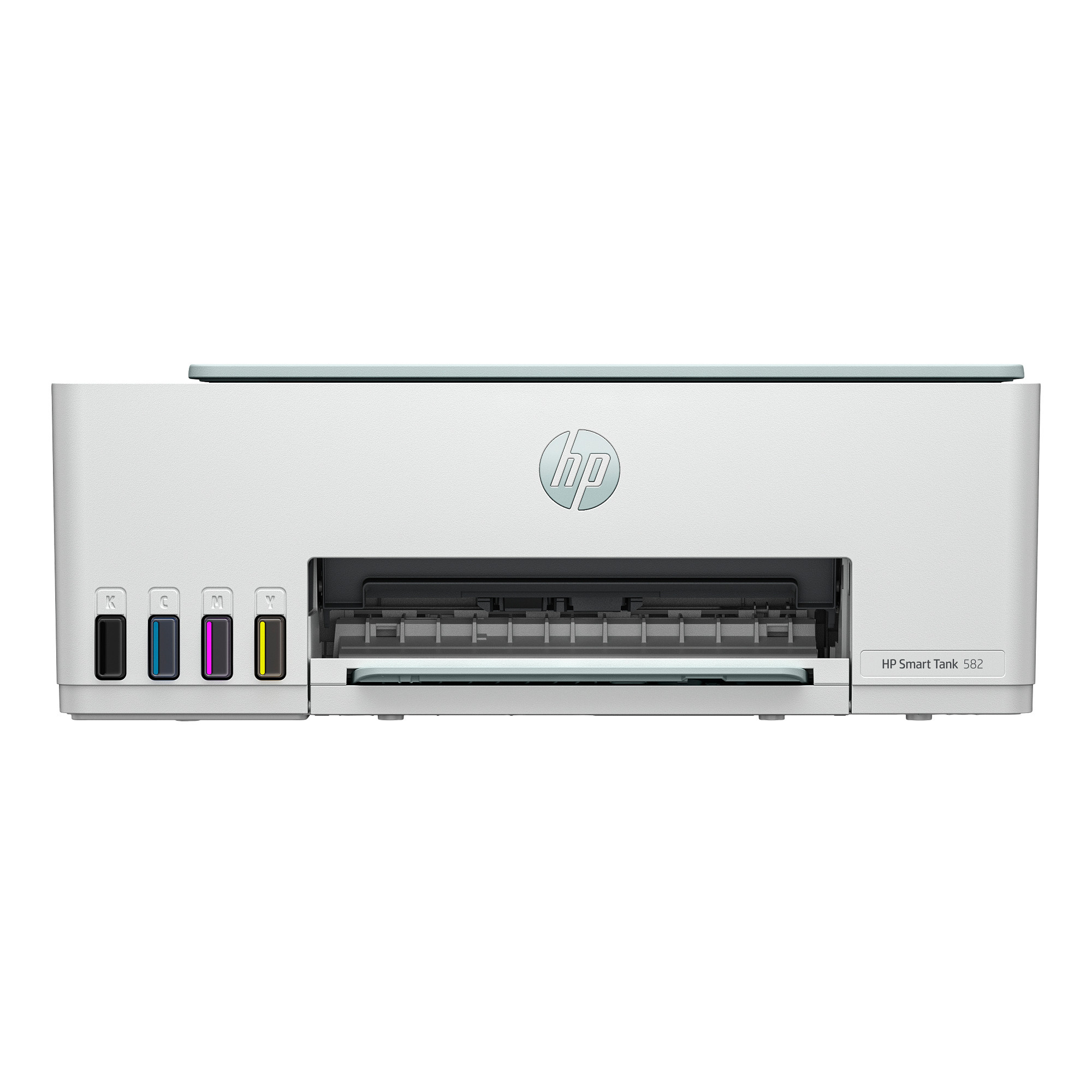 | Obsah balenia | Tlačiareň HP Smart Tank 582 All-in-One; 3 x 135 ml fľaša originálneho čierneho atramentu HP Ink Bottle GT53XL (1VV21A); 50 ml fľaša originálneho azúrového atramentu HP Ink Bottle GT52 (6ZE03A); 50 ml fľaša originálneho purpurového atramentu HP Ink Bottle GT52 (6ZE04A); 50 ml fľaša originálneho čierneho atramentu HP Ink Bottle GT52 (6ZE05A); Originálna čierna tlačová hlava HP; Originálna trojfarebná tlačová hlava HP; Inštalačná príručka; Referenčná príručka; Leták s upozornením o atramente; Leták s právnymi informáciami; Leták so zárukou; Napájací kábel; Ďalšie informácie o náplniach a výťažnosti sú uvedené na stránke https://www.hp.com/go/learnaboutsupplies |