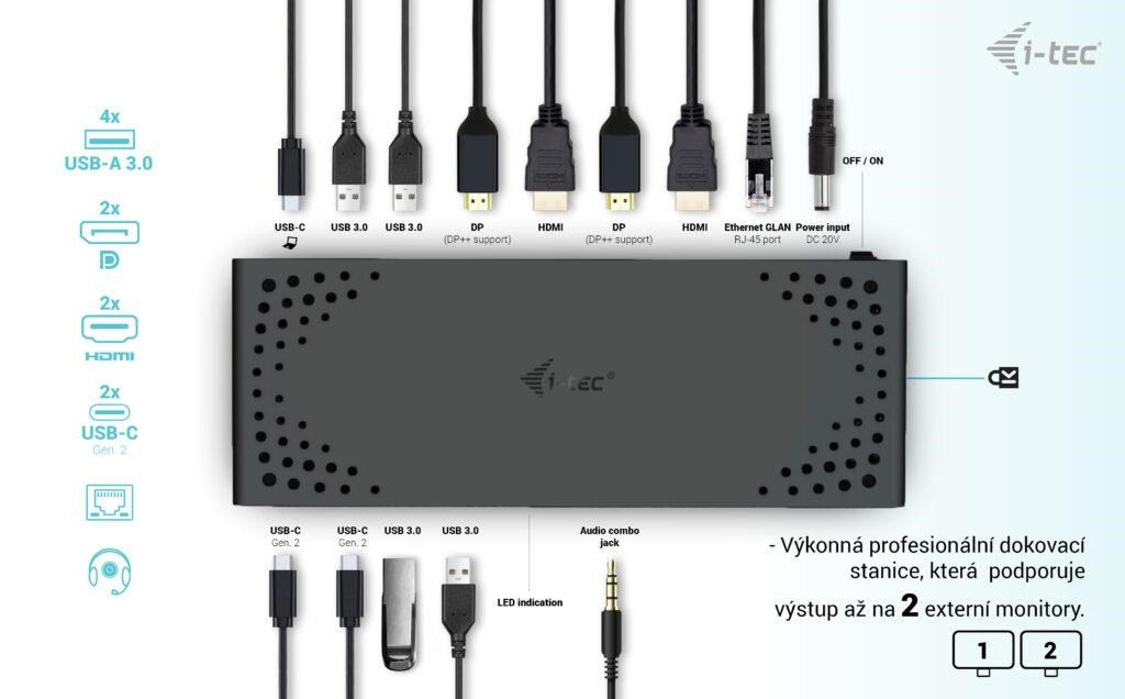 Akčné ponuky na váš e-mailVýkonná kancelárska dokovacia stanica s podporou superrýchlych portov USB Gen 2. Dokovacia stanica podporuje výstup až na dva externé monitory vo vysokom rozlíšení až 4K. Dokovaciu stanicu je možné prakticky použiť so všetkými notebookmi, pretože podporuje pripojenie ku všetkým bežným portom: 3.0, USB-C a Thunderbolt 3/4 a zároveň podporuje všetky bežné súčasné operačné systémy.