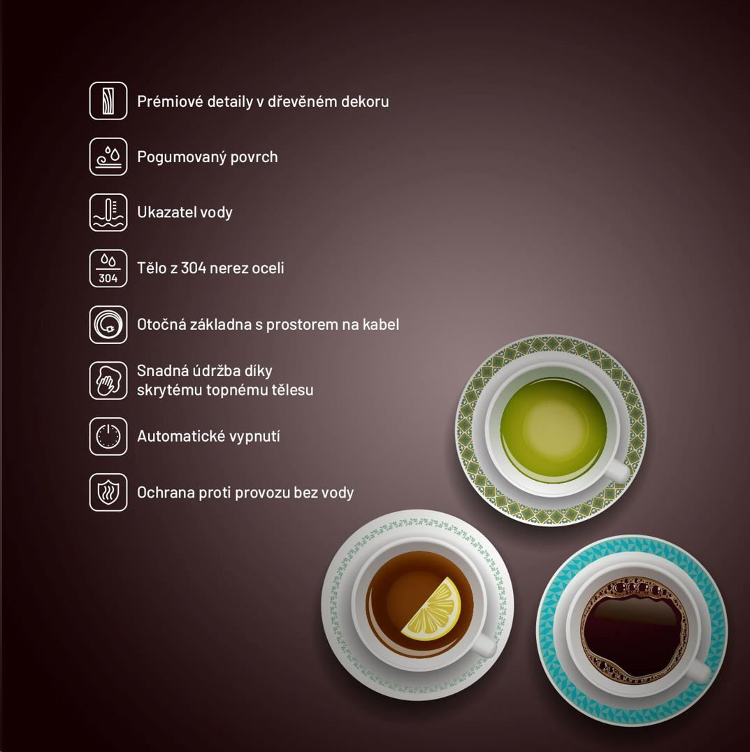 Vykurovacie teleso kanvice je skryté, menej sa zanáša a vodný kameň takmer nemá šancu.
