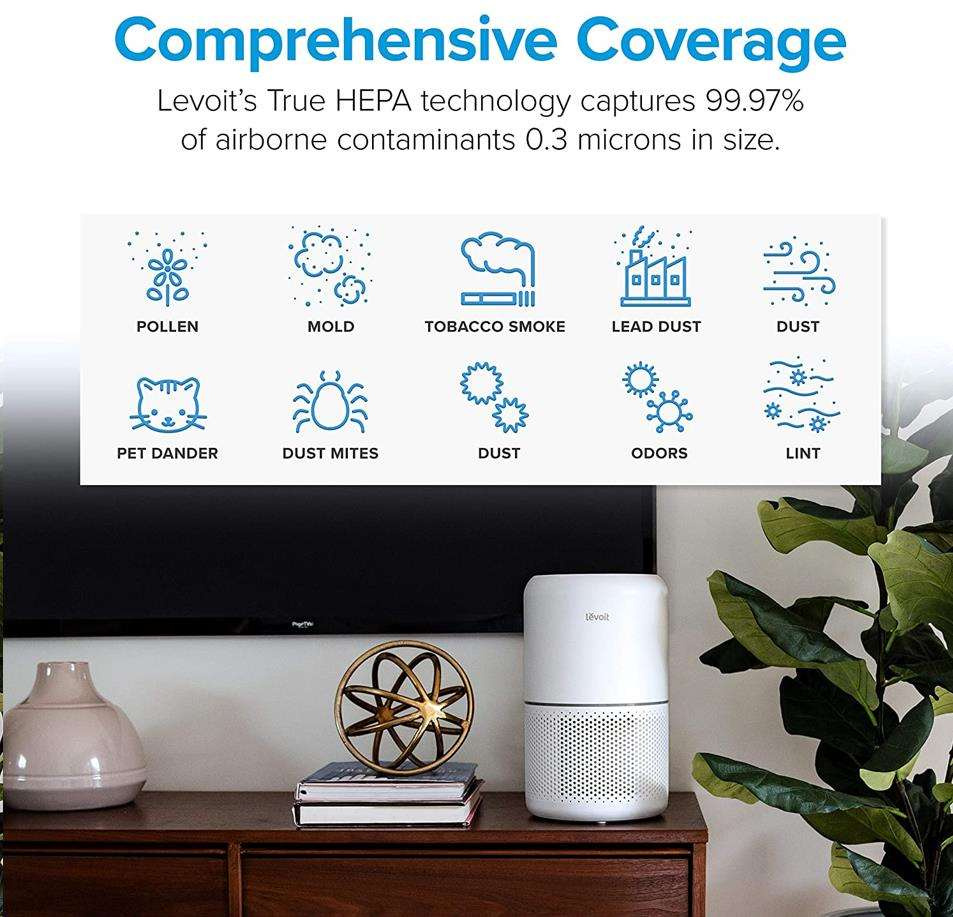 Druhou vrstvou je HEPA filter H13. To odlišuje Levoit od konkurencie, pretože filter HEPA H13 je oveľa kvalitnejší a spoľahlivejší ako bežne používané HEPA H11. Tu sa odfiltrujú jemné prachové častice, pleseň, baktérie, peľ, dymové častice, roztoče a srsť.