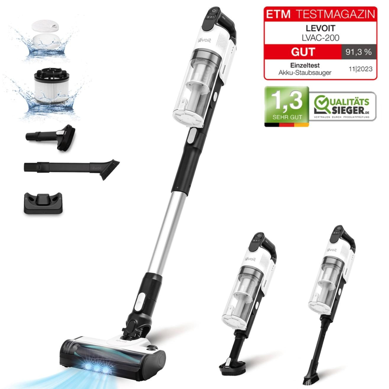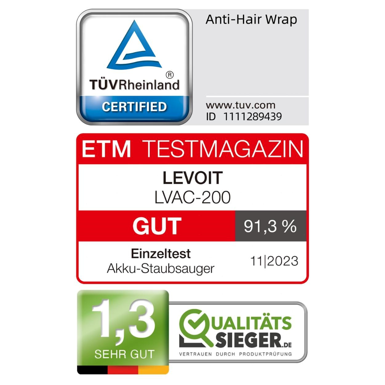 V nezávislom teste nemeckej skúšobne ETM Testmagazin získal model Levoiit LVAC-200 vysoké hodnotenie a známku GUT. V teste bola napríklad nameraná ešte nižšia hladina hluku, ako uvádza výrobca, a to 73 dB v režime ECO a 75 dB v režime Turbo.
