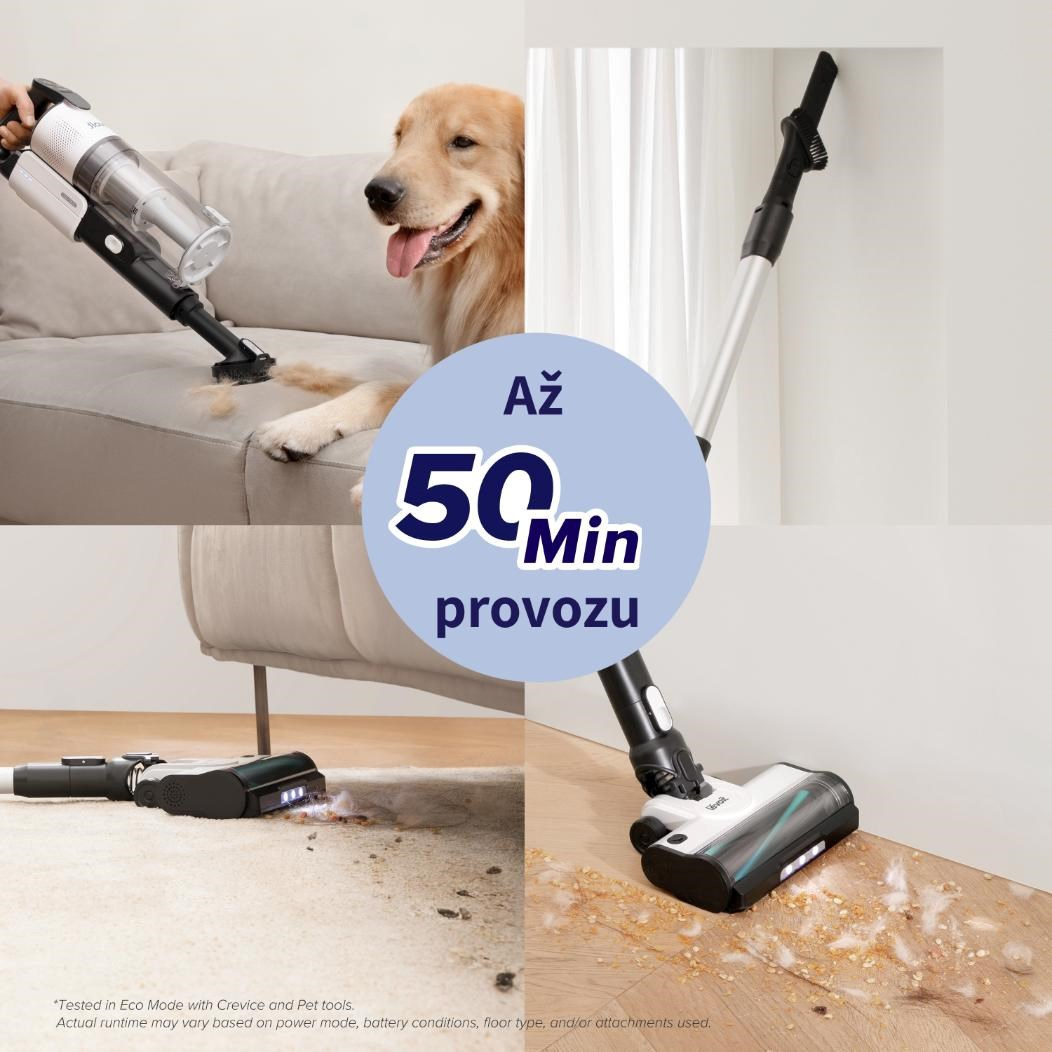 Vysávač je vybavený 180 W bezkartáčovým motorom napájaným z 2200 mAh batérie. Vďaka kombinácii moderného motora a veľkej batérie je vysávač nielen tichý, ale čo je dôležitejšie, vydrží naozaj dlho. Počas bežného upratovania dokáže vysávať až 50 minút, a to je dostatočný čas na vyčistenie celej plochy. Motor má 100 000 otáčok a poradí si aj s ťažšími nečistotami, ako je piesok a iný vonkajší materiál.