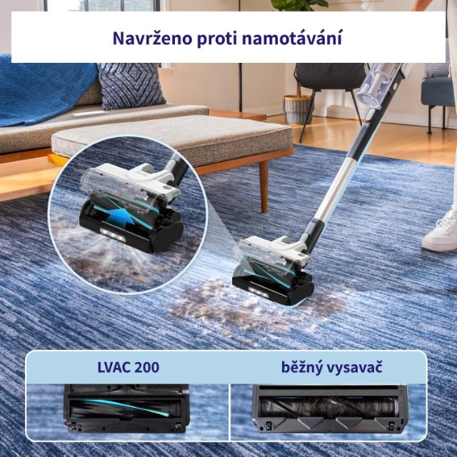 Rotačná kefa bola navrhnutá tak, aby ste nemuseli neustále rozčesávať vlasy a chlpy. Zároveň však jej textilné a gumové čepele dokonale fungujú na ich odstránenie. Zabudovaný hrebeň oddeľuje vlasy a chlpy z kefy do odpadovej nádoby, čím ju udržiava čistú. LVAC 200 je ideálny nástroj pre domácnosti s domácimi zvieratami.