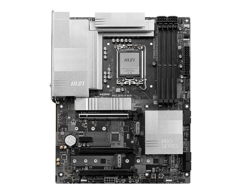 Akčné ponuky na váš e-mailPRO Z890-P WIFI ponúka jednoduchý dizajn s harmonickou striebornou farbou, ktorá dokonale ladí s bielymi aj čiernymi PC zostavami. Je navrhnutá s mnohými exkluzívnymi funkciami MSI, true Wi-Fi 7 s EZ Antenna, 5G LAN, Thunderbolt 4, PCIe 5.0 M.2 s EZ M.2 Shield Frozr II, a doplnkovým PCIe napájaním, pripravená na procesory Intel® Core™ Ultra.