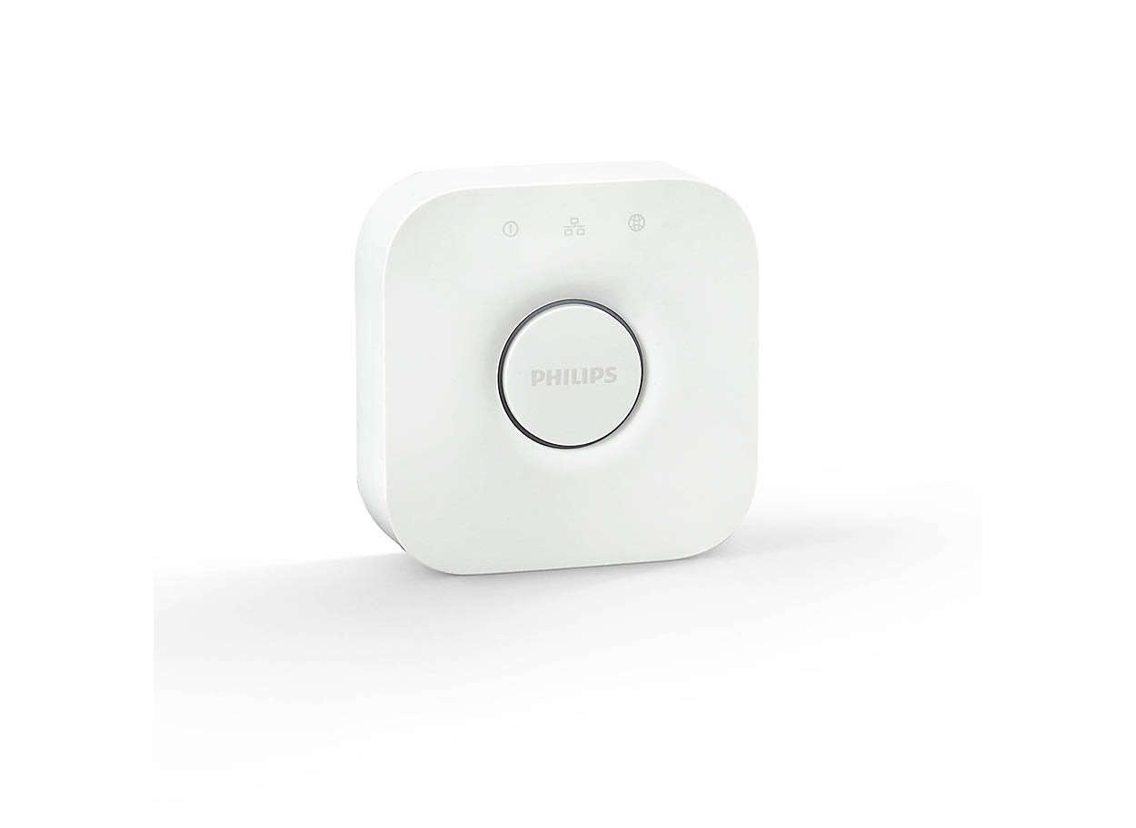 Ak si chcete postaviť vlastný systém Philips Hue, stačí si zaobstarať môstek Philips Hue. Ide o centrum všetkých operácií, ktoré umožňuje ovládať všetky výrobky Philips Hue prostredníctvom aplikácie Philips Hue. Po nainštalovaní môstku Philips Hue a stiahnutí aplikácie Philips Hue na chytré zariadenie si môžete dať voľný priechod svojej predstavivosti a vytvoriť si vlastný systém.