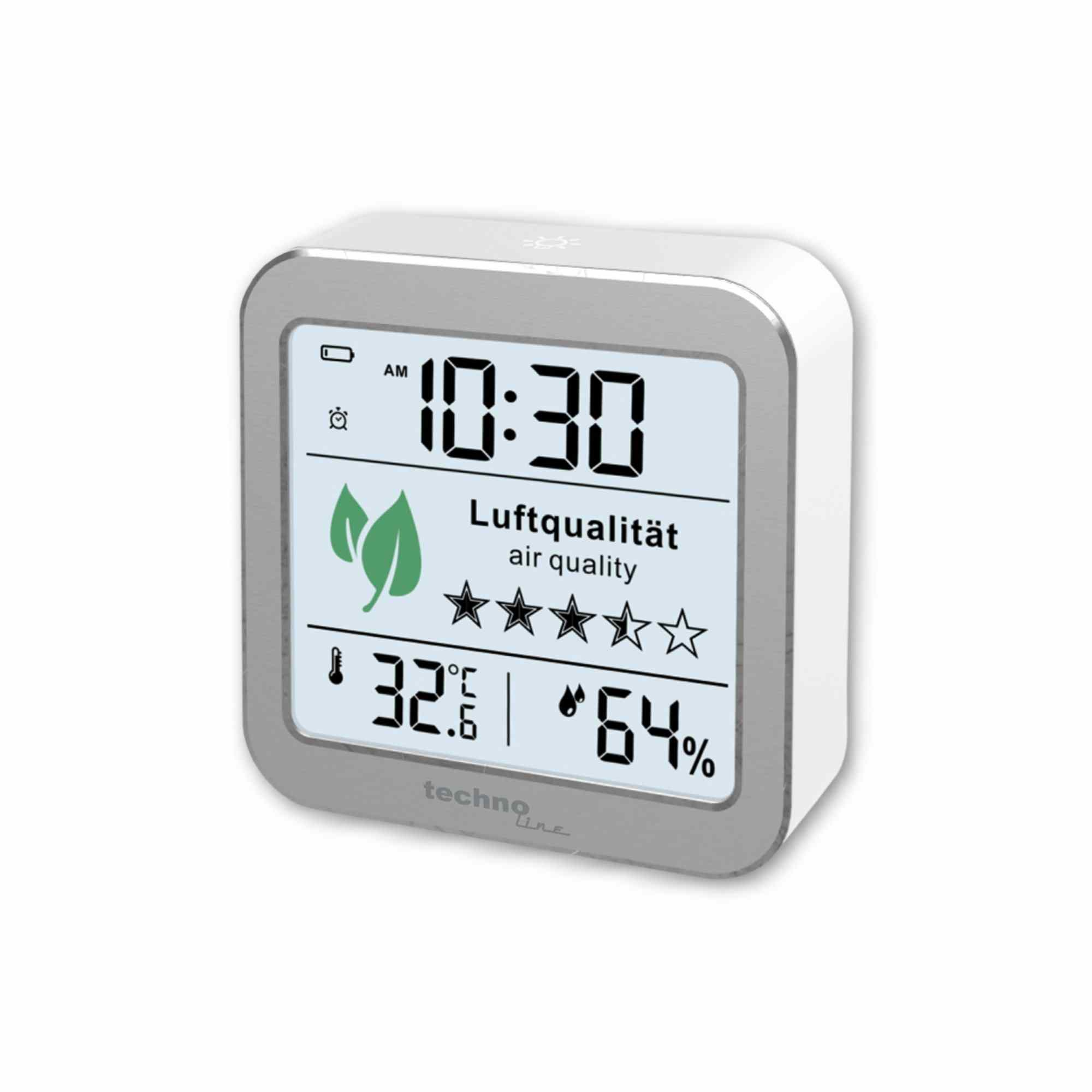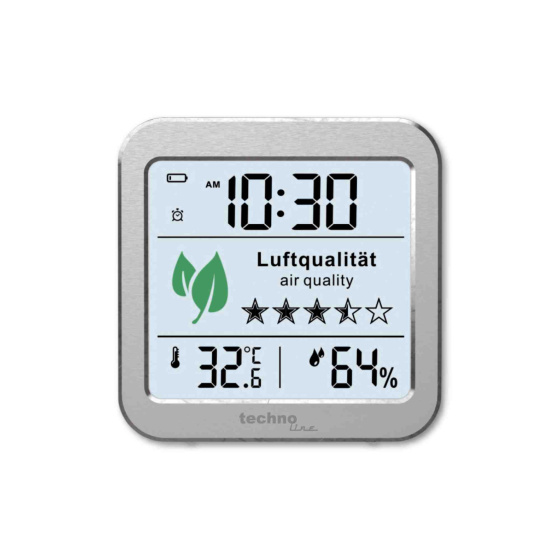 Merač kvality ovzdušia vám pomôže pri analýze a vyhodnotení kvality vzduchu v miestnosti. Integrovaný snímač kvality vzduchu nepretržite monitoruje klímu v miestnosti, analyzuje koncentráciu znečisťujúcich látok a na základe zistených hodnôt poskytne odporúčanie na vyvetranie miestnosti. Meranie prebieha pomocou výkonného senzora súhrnu toxických organických látok (TVOC) a CO2. Koncentrácia CO2 je dobrým indikátorom vydýchaného vzduchu. V dychu vnútri je koncentrácia CO2 približne 50 x vyššia než vo vdychovanom vzduchu. Pre odporúčanie vetrania sa využíva fakt, že ak stúpa koncentrácia CO2, rastie aj koncentrácia toxických organických látok (VOC). Keď sa začne vetranie na základe zvýšenej koncentrácie CO2, klesne koncentrácia ako CO2, tak aj koncentrácia VOC a cítime sa lepšie. Senzor CO2 merača kvality vzduchu WL 1020 neukazuje obsah CO2 priamo v prostredí, ale približnú hodnotu odvozenú od iných príslušných parametrov senzora. Vnútri sa vzduch skladá približne z 78 % dusíka, približne 21 % kyslíka, približne 1 % ušľachtilých plynov a približne 0,03 % oxid uhličitý. Koncentrácie vzácnych plynov a oxidu uhličitého sú rozhodujúce pre hodnotenie kvality vnútorného ovzdušia a jeho vplyv na naše pohodlie a zdravie. Kvalita vzduchu je označená 5 hviezdičkami na 11 úrovniach. Čím viac symbolov hviezd je zobrazených, tým lepšia je nameraná kvalita vzduchu. Pri napájaní USB adaptérom (adaptér nie je súčasťou balenia) je senzor kvality vzduchu stále zapnutý, prebieha meranie a odporúčania vetrania sú indikované žltým osvetlením a dôrazné odporúčanie vetrania podsvietením červeným osvetlením displeja. Biele osvetlenie indikuje dobrú kvalitu vzduchu. Pri napájaní iba batériami je osvetlenie displeja vypnuté, je zobrazený čas, teplota, relatívna vlhkosť a posledné meranie kvality vzduchu. Pre obnovenie merania kvality vzduchu je potrebné manuálne aktivovať senzor kvality vzduchu, zobrazí sa hodnotenie pomocou hviezdičiek a z dôvodu úspory batérií sa po 5 minútach merania vypne a na displeji zostáva výsledok posledného merania. ? LCD displej o rozmeroch 58 x 65 mm ? veľkosť číslic na displeji – čas 14 mm, teplota a relatívna vlhkosť 10 mm ? zobrazenie kvality vzduchu pomocou 5 hviezdičiek v 11 úrovniach a farbou osvetlenia displeja (biela, žltá, červená - pri napájaní USB adaptérom) ? možnosť obnovenia továrenskej kalibrácie ? meranie teploty a relatívnej vlhkosti ? zobrazenie teploty vo °C alebo °F ? pamäť na maximálne a minimálne namerané hodnoty teploty a rel. vlhkosti ? čas vo formáte 12 alebo 24 hodín ? budík s funkciou opakovaného budenia po 5 minútach (Snooze) ? budísi signál - 4 pípnutia za sekundu ? 3 stupne jasu osvetlenia alebo vypnutie osvetlenia displeja (pri napájaní USB adaptérom) ? ikona slabých batérií ? farba biela so strieborným rámčekom ? napájanie pomocou batérií (2 ks typ AAA-mikrotužkové) alebo USB adaptérom (nie je súčasťou balenia) ? možnosť postavenia, pri napájaní iba batériami aj zavedenia Obsah balenia ? merací prístroj kvality ovzdušia ? USB kábla ? český, nemecký, anglický TECHNICKÉ PARAMETRE Detekcia CO2 áno, od 400 do 9999 ppm Metóda merania CO2 neukazuje CO2 priamo v prostredí, ale príslušnú hodnotu odvozenú od iných parametrov Detekcia TVOC áno, od 0 do 9,999 mg/m3 Indikácia kvality vzduchu 5 hviezdičkami v 11 úrovniach, farbou osvetlenia displeja (biela, žltá, červená - pri napájaní USB adaptérom) Rozsah merania vnútorné teploty / tolerance -9,9°C až +50°C ±1°C Rozlíšenie vnútorné teploty 0,1°C Rozsah merania vnútorné rel. vlhkosti / tolerance 10% až 95% ±5% Rozlíšenie vnútorné rel. vlhkosti 1% Pamäť na max a min namerané hodnoty áno, teploty a rel. vlhkosti Čas áno, manuálne nastavený Formát času 12 / 24 h Budík áno Opakované buďanie (Snooze) áno, po 5 minútach Rozmery displeja hlavnej jednotky 64 x 58 mm Veľkosť číslic – hlavná jednotka čas 19 mm, teplota, rel. vlhkosť 10 mm Osvetlenie displeja hlavnej jednotky áno, pri napájaní USB adaptérom 3 stupne jasu a možnosť vypnutia osvetlenia, indikácia kvality vzduchu zmenou farby osvetlenia displeja - biela, žltá, červená. Pri napájaní batériami je osvetlenie vypnuté. Napájanie USB adaptér 5,0 V, 1 A (nie je súčasťou balenia) 2 ks batérií 1,5 V typ AAA (mikrotužkové, nie sú súčasťou balenia) Celkové rozmery 81 x 81 x 25 mm Hmotnosť 98 g (bez batérií) Farba biela so strieborným rámčekom Možnosť postavenia / zavešenia áno / áno, pri napájaní iba batériami