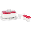 Súčasťou balenia je 6 nádob po 140 ml s viečkom a sitkom, ako aj podnos s úchytmi, ktoré je možné použiť na uloženie 6 pohárov pre jednoduchú prepravu v chladničke. Môže sa umývať v umývačke riadu a 100% neobsahuje BPA