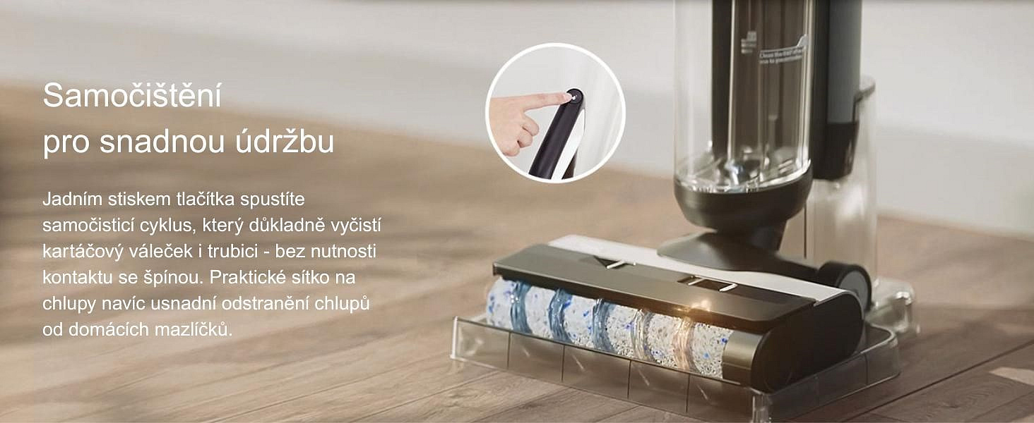 Inovatívny systém MHCBS (Multi-stage Hybrid Cleaning Brush System) zabezpečuje, že kefkový valec zostáva počas celého upratovania vždy čistý – bez šírenia nečistôt späť na podlahu.