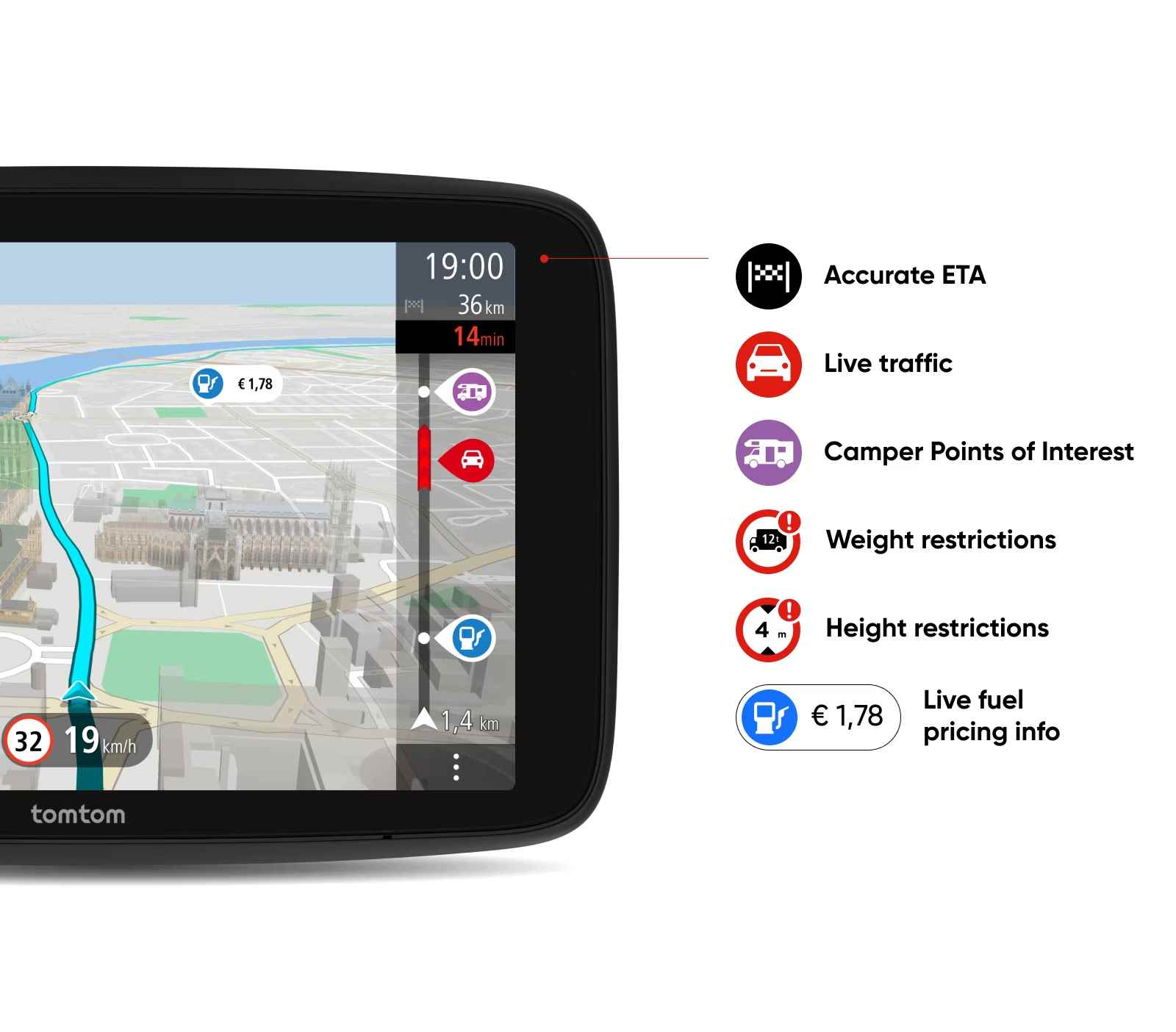 Ceny pohonných hmôt v reálnom čase, nabíjacie stanice pre elektrické vozidlá, upozornenia na radary rýchlosti a informácie o počasí. Prvý rok používania zdarma pri zariadení GO Camper Max. U sady GO Camper Max PP sú služby zadarmo na 2 roky.