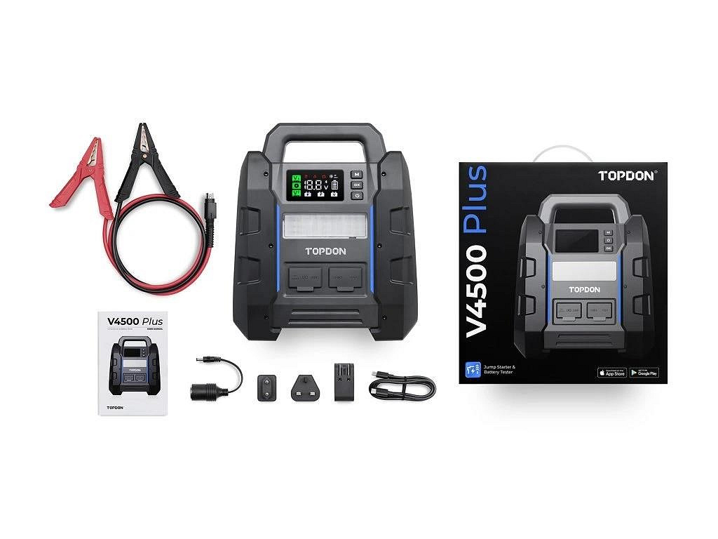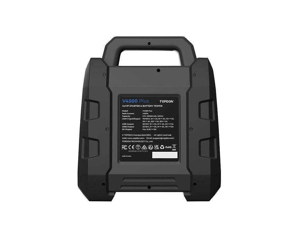 12 V štartér TOPDON V4500 Plus je určený špeciálne pre profesionálne vozidlá a vozidlá s vysokým výkonom. Chváli sa špičkovým prúdom až 4500 A a počas niekoľkých sekúnd rýchlo oživí najrôznejšie vozidlá - od návesov a prívesov až po terénne vozidlá a lode. Navyše s kapacitou až 45 štartov na jedno nabitie budete vždy pripravení na cestu s istotou.