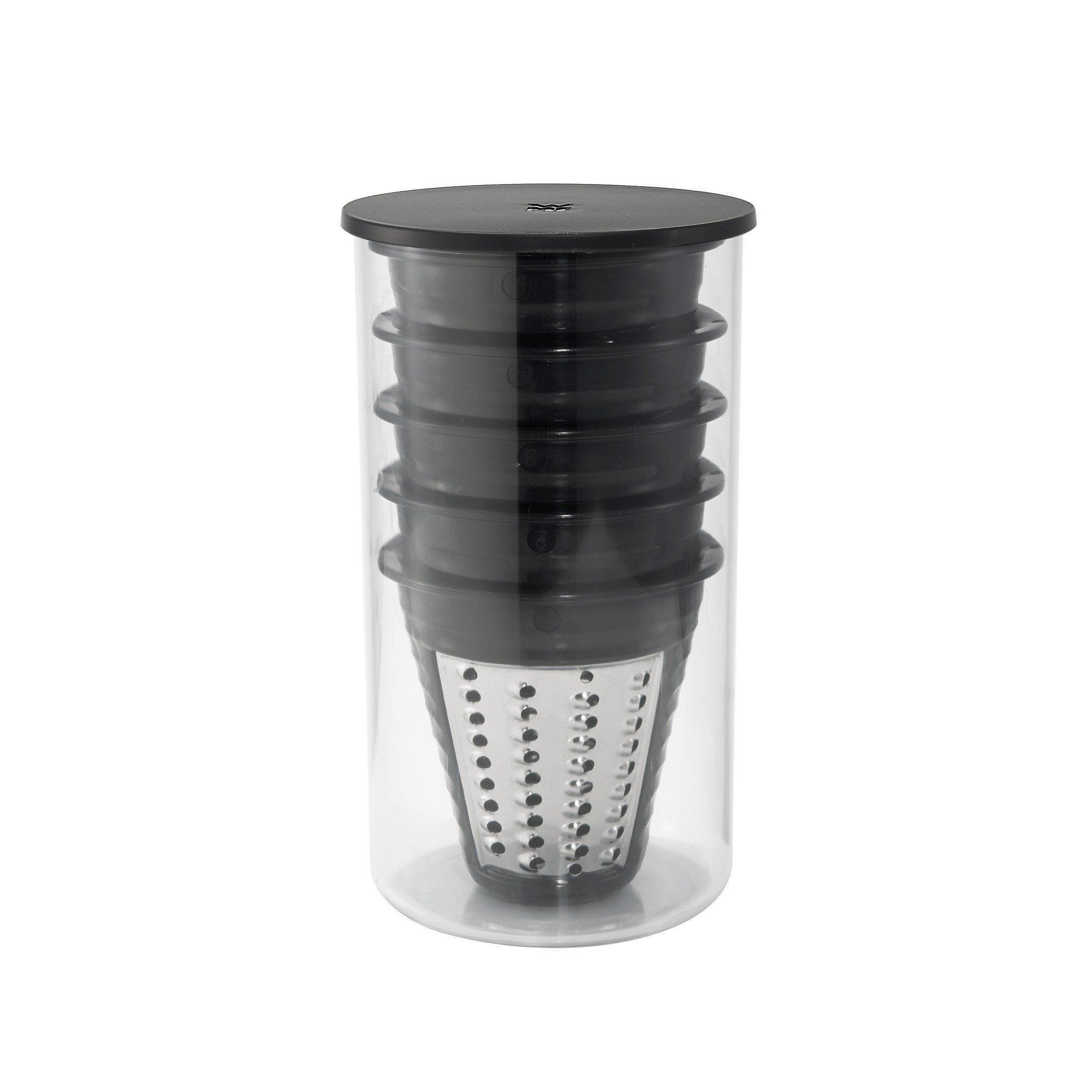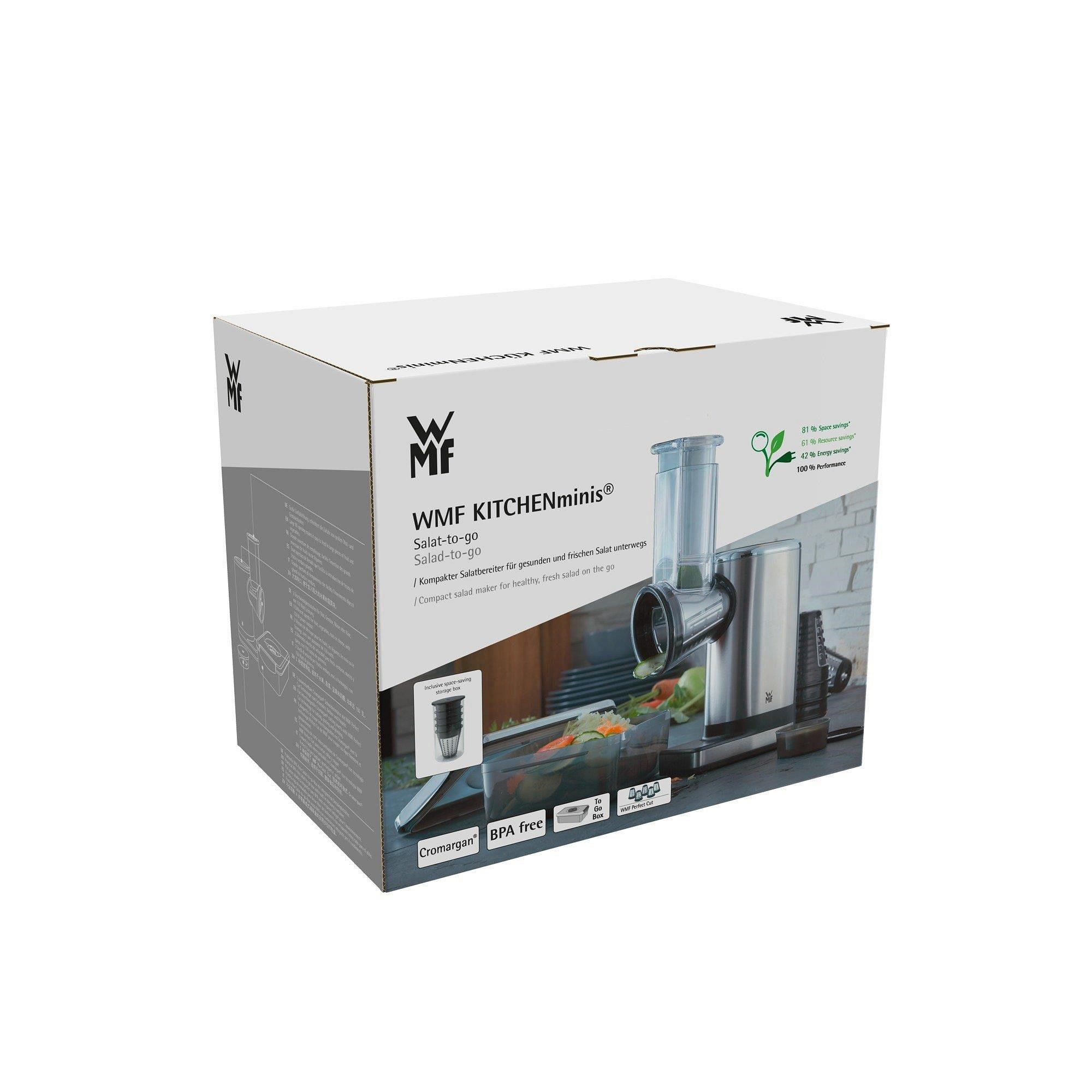 Akčné ponuky na váš e-mailPokud se neobjedete bez svého čerstvého a zdravého salátu ani na cestách, je pro vás struhadlo Salad-to-go to pravé. Tento malý kuchyňský pomocník naseká všechny druhy ovoce a zeleniny od mrkve po zelí, poradí si s tvrdými surovinami jako ořechy, a nakonec rozkrájí sýr rychlostí blesku do praktické cestovní misky, která je samozřejmě bez bisfenolu A. Mistička na dresing je připevněna do víčka. Salát tak zůstane čerstvý a křupavý a Vy do něj můžete přidat domácí dresing těsně před konzumací. Součástí struhadla je také 5 vyměnitelných nástavců z nerezové oceli Cromargan®, každý z nich k jinému použití.