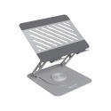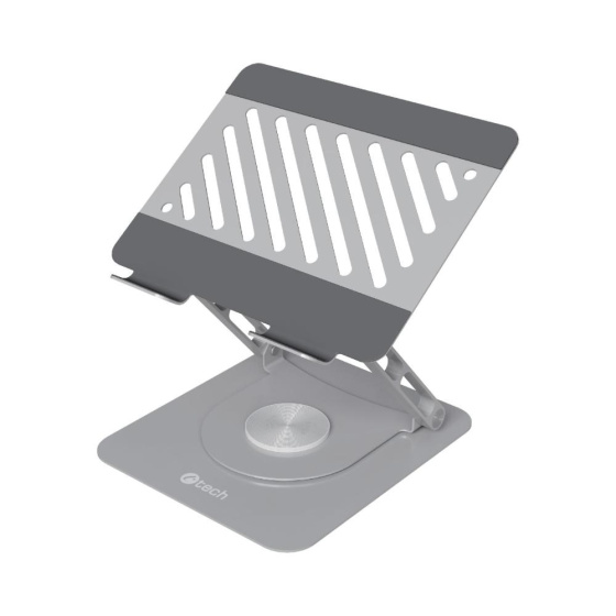 Quallis NTS-200 podporuje notebooky až do veľkosti 16" a jeho pevná hliníková konštrukcia zabezpečuje vysokú odolnosť, nosnosť a elegantný vzhľad. Na rozdiel od bežných stojanov je vybavený otočnou základňou s 360° otáčaním, čo umožňuje plynulé natáčanie notebooku bez nutnosti premiestňovania celej konštrukcie – ideálne pri prezentáciách, zdieľaní obrazovky alebo striedavej práci viacerých používateľov.