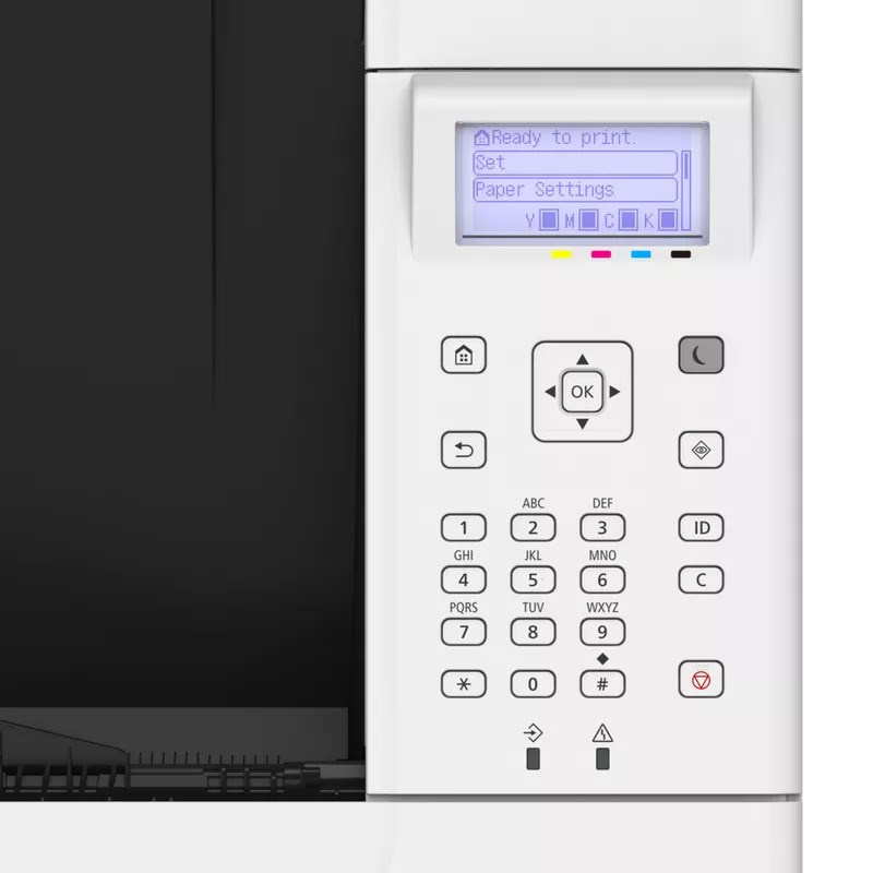 | Ovládací panel | Displej LCD so 5 riadkami, 5 indikátorov LED (Online, Hotovo, Správa, Práca a Úspora energie), tlačidlá, číselná klávesnica s 10 tlačidlami |