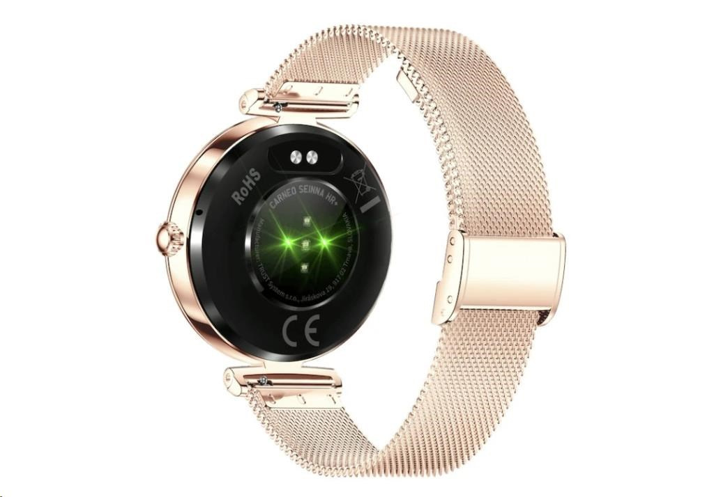 Moderné, luxusné fitness hodinky Carneo Seinna HR+ v elegantnom striebornom prevedení disponujú SUPER AMOLED displejom, ktorý je možné aktivovať jednoduchým otočením ruky. Merajú srdcový tep, krvný tlak, okysličenie krvi, najazdenú vzdialenosť, spálené kalórie a kvalitu spánku. Súčasťou je batéria s výdržou cca 4–5 dní. Podľa certifikácie IP68 sú odolné voči vode a prachu. Hodinky s podporou technológie Bluetooth 5.2 sú kompatibilné s operačným systémom iOS a Android. Kovový, pletený remienok je príjemný na dotyk a zaručuje komfort po celý deň. Remienok je možné vymeniť za svetlošedý silikónový remienok, ktorý je súčasťou balenia.