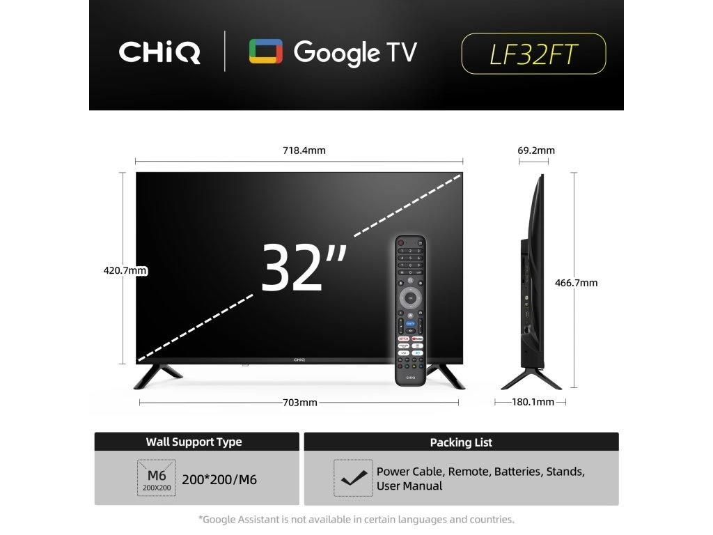 CHiQ 32“ LF32FT, ultratenká bezrámečková Smart Google TV, HDR10 / HLG, obrazovka Full HD s rozlíšením 1920 x 1080 pixelov
