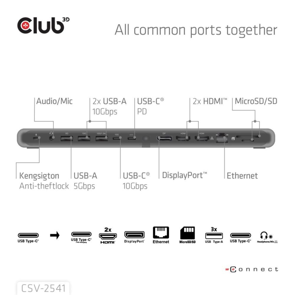 Akčné ponuky na váš e-mailCSV-2541 je dokovacia stanica USB Type-C 10Gb/s 12 v 1 s trojitým displejom, 2x HDMI, 1x DisplayPort, 1x dátový port USB Type-C, 3x USB Type-A, RJ45, čítačka kariet, 3,5mm audio port a nabíjací port USB Type-C, ktorá predstavuje ideálne riešenie pre rozšírenie hostiteľského počítača USB Type-C alebo Thunderbolt, najmä pre hostiteľov s jediným portom USB Type-C. Vďaka konštrukcii s dolným držiakom môže byť stabilným stojanom pre vaše notebooky. Dodáva sa so 100W nabíjačkou a kábla, ktorý je súčasťou balenia.