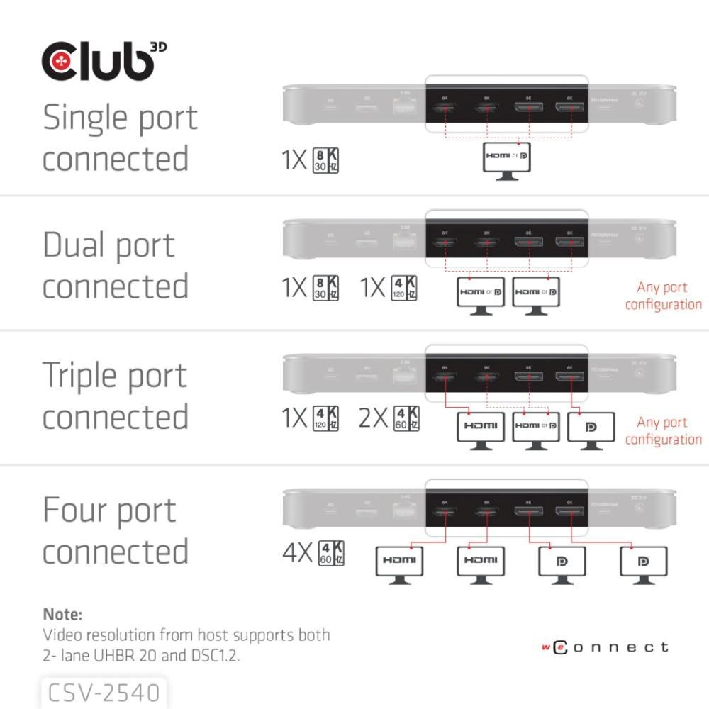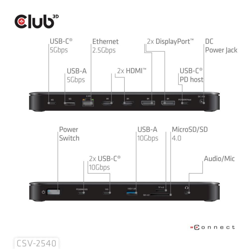 Akčné ponuky na váš e-mailCSV-2540 je prenosná dockovacia stanica 14 v 1 USB Type-C® 10Gb/s na štyri displeje s režimom 2 pruhov DisplayPort™ 2.1 Alt , ktorá slúži na rozšírenie portu Type-C® o viac portov pre video, dáta, zvuk, Ethernet a napájanie a predstavuje ideálne riešenie na splnenie požiadaviek používateľov na rozšírenie. Má 4 videá (výstup štyroch 4K/60Hz videí súčasne, ak hostiteľ podporuje oba UHBR10&DSC) pre prenos videa, 5 portov USB pre prenos dát. 2,5 Gigabit Ethernet pre ultrarýchly Ethernet, microSD/SD kartu čítačku, 3,5mm kombinovaný audio konektor. Okrem toho je táto dockovacia stanica vybavená 150W jednosmerného napájania, ktoré ponúka max. 100 W pre pripojený počítač a tiež max. 30W nabíjania pre mobilné zariadenia USB-C.