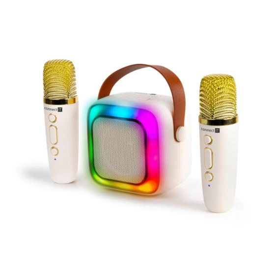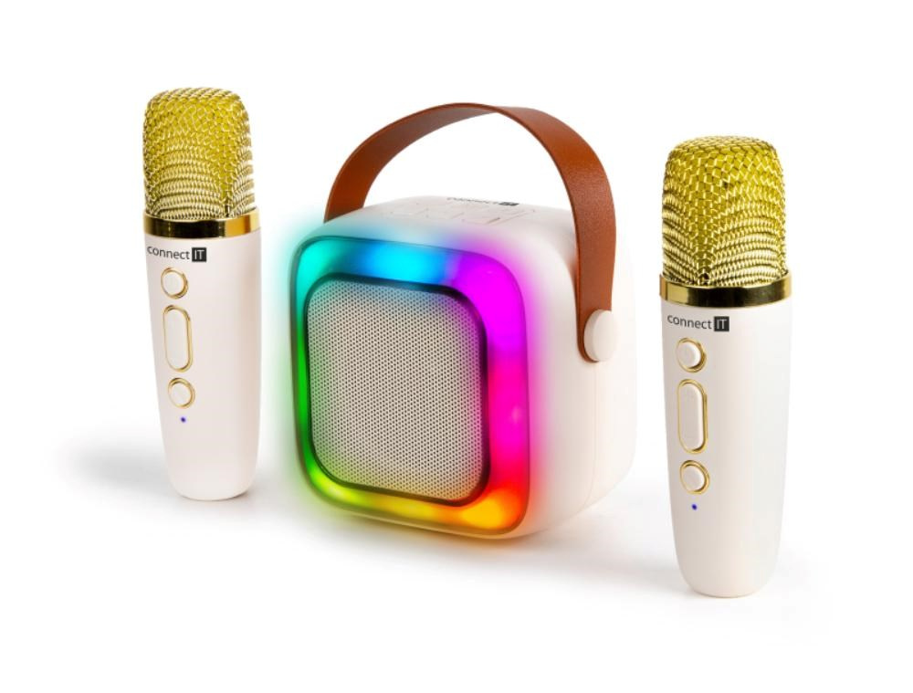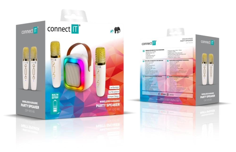 Akčné ponuky na váš e-mailBezdrátový reproduktor CONNECT IT 2Mic se dvěma mikrofony pro nekonečné množství karaoke zábavy.