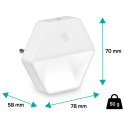 Světlo disponuje posuvníkem, který umožňuje zapnout/vypnout světlo a nastavit režim automatického zapnutí při zaznamenání pohybu v šeru. Světlo stačí jednoduše zapojit do libovolné zásuvky a při příkonu 0,60 W se nemusíte bát spotřeby elektrické energie. LED zdroj světla disponuje světelným tokem 30 lumenů.