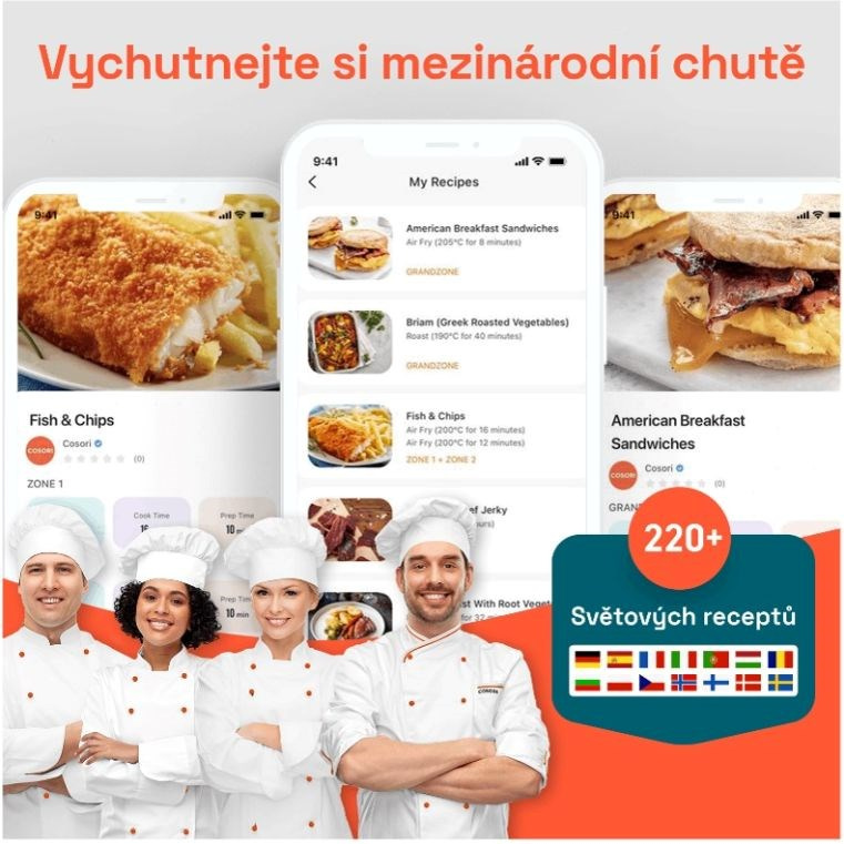 Fritéza Cosori Turbo Tower bola navrhnutá v Kalifornii a vyvinutá tímom kuchárov Cosori. Aplikácia obsahuje viac ako 200 medzinárodných receptov, ktoré môžete vďaka jednoduchosti prípravy vo fritéze ľahko pripraviť pre svojich blízkych.