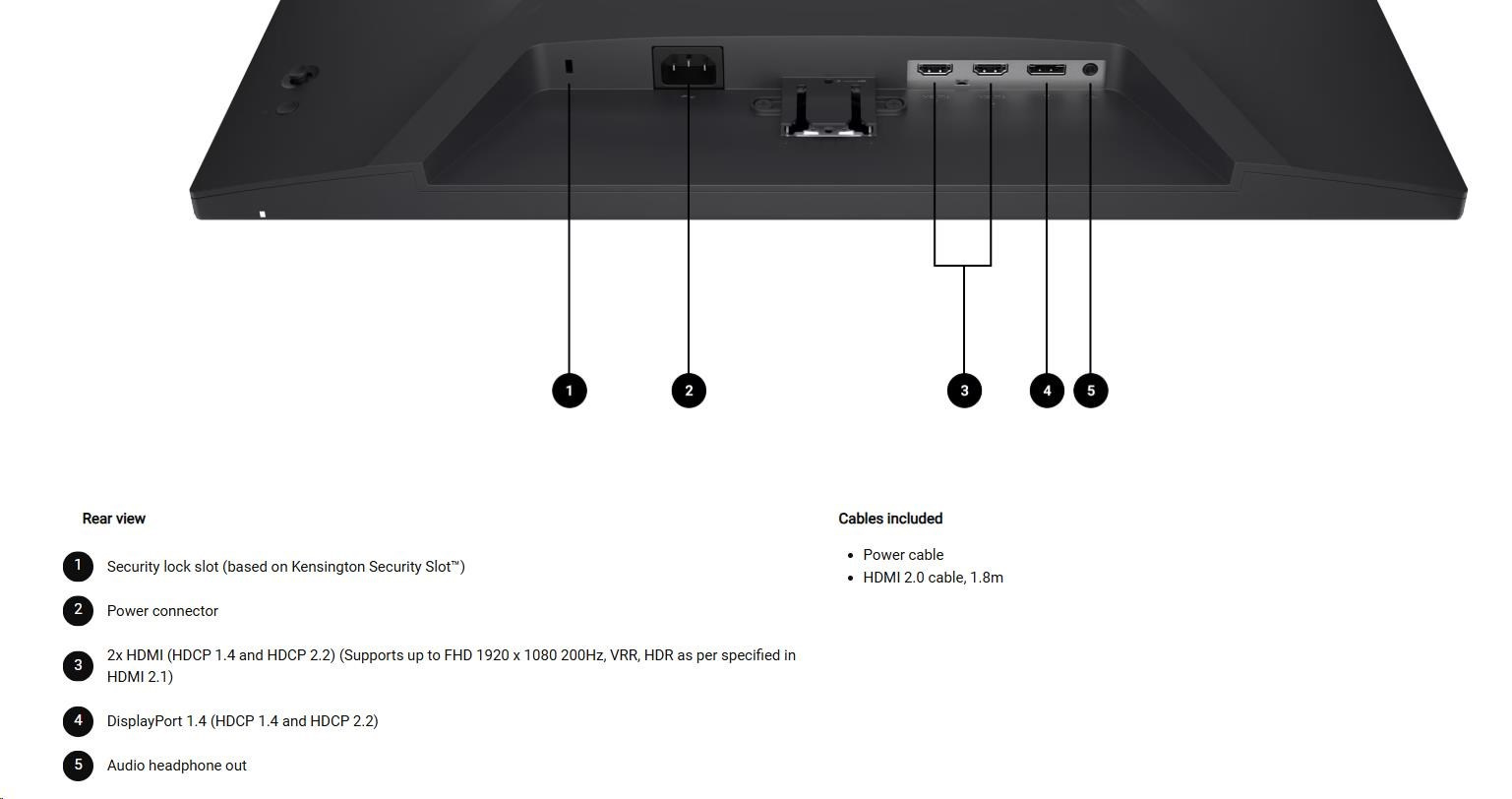 • 2 HDMI porty (HDCP 1.4 a HDCP 2.2) (Podporuje až FHD 1920 x 1080 200Hz, VRR, HDR podľa špecifikácií v HDMI 2.1)