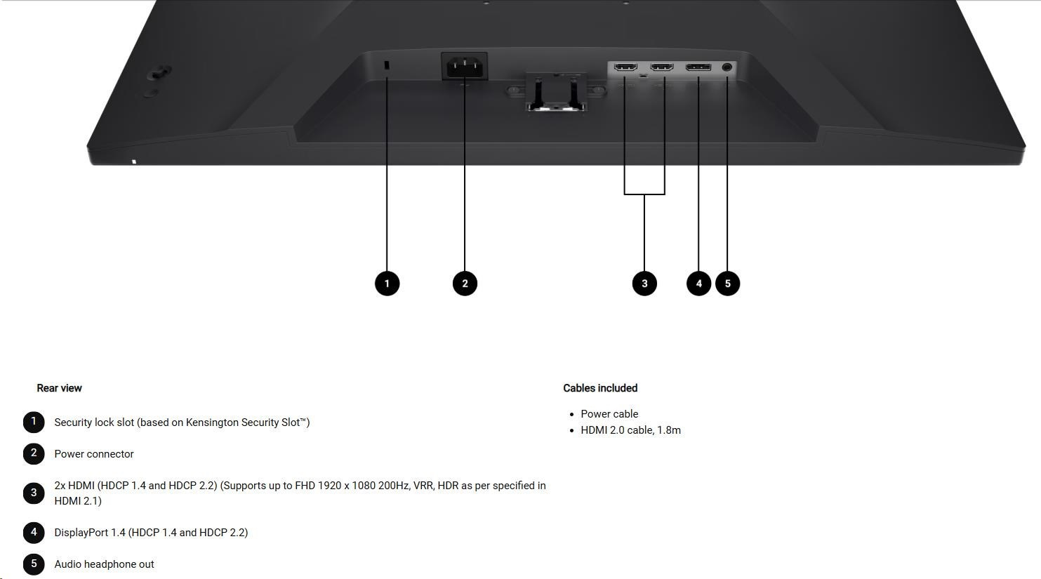 | 1. | - 2 HDMI porty (HDCP 1.4 a HDCP 2.2) (Podporuje až FHD 1920 x 1080 200Hz, VRR, HDR podľa špecifikácie v HDMI 2.1)